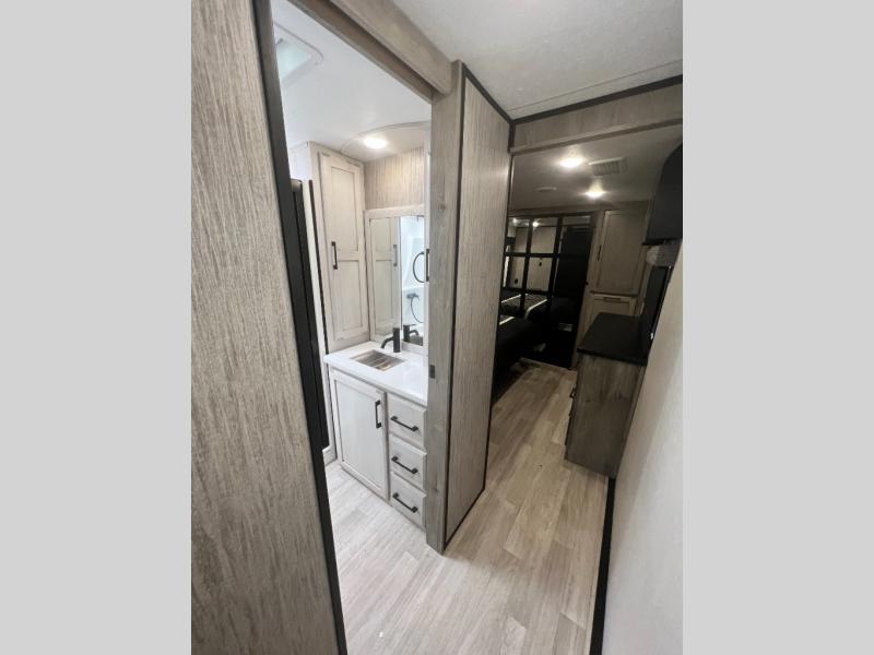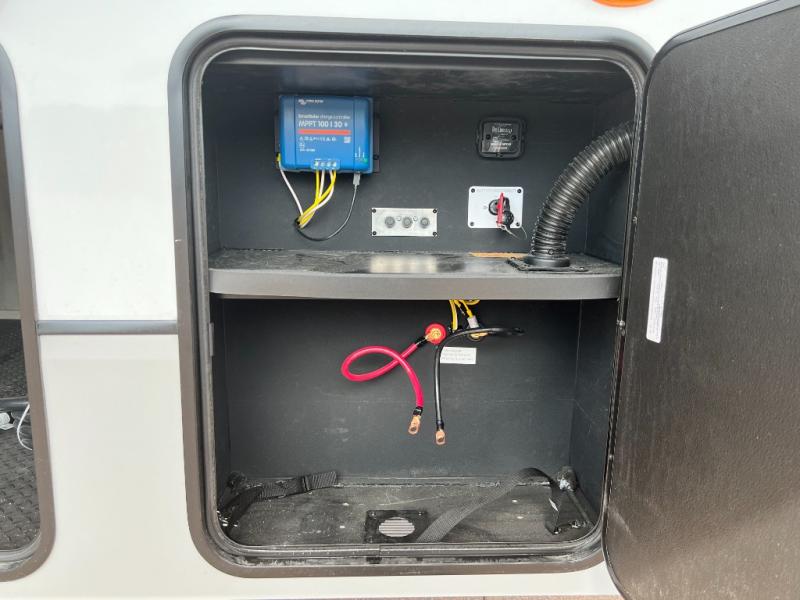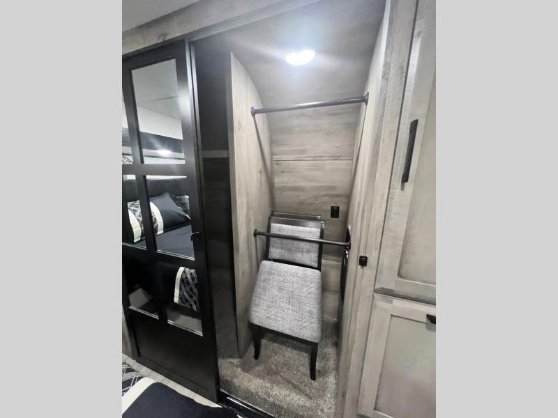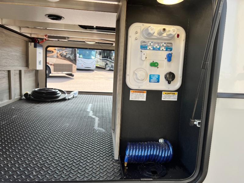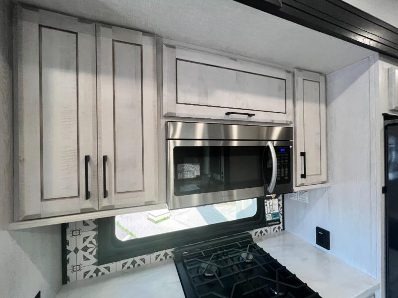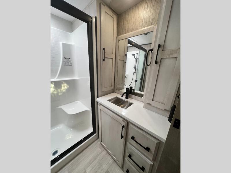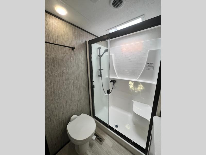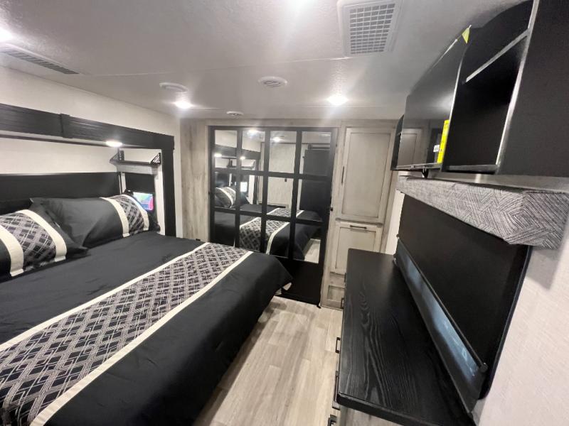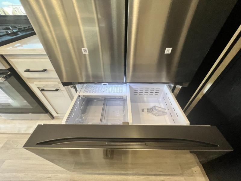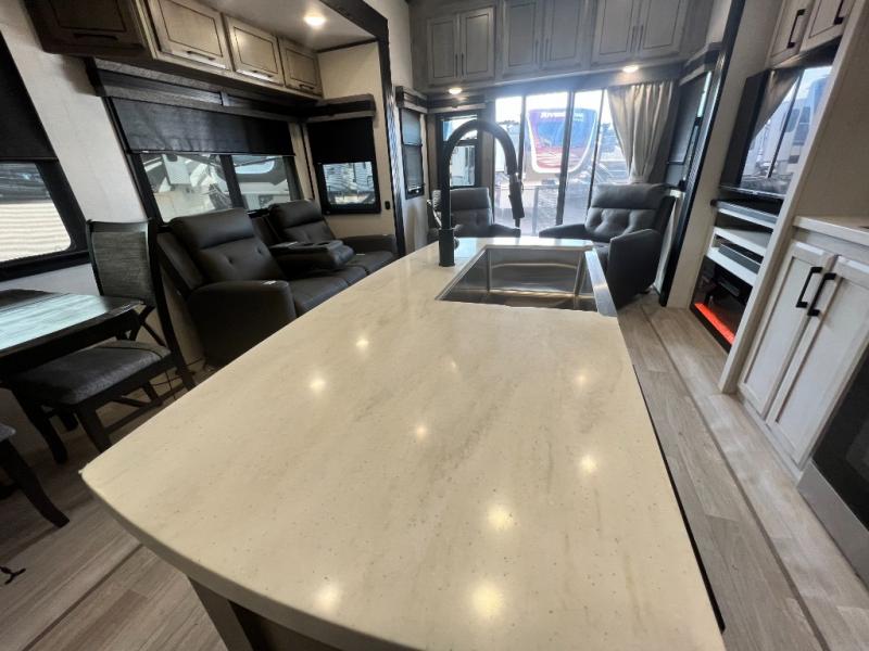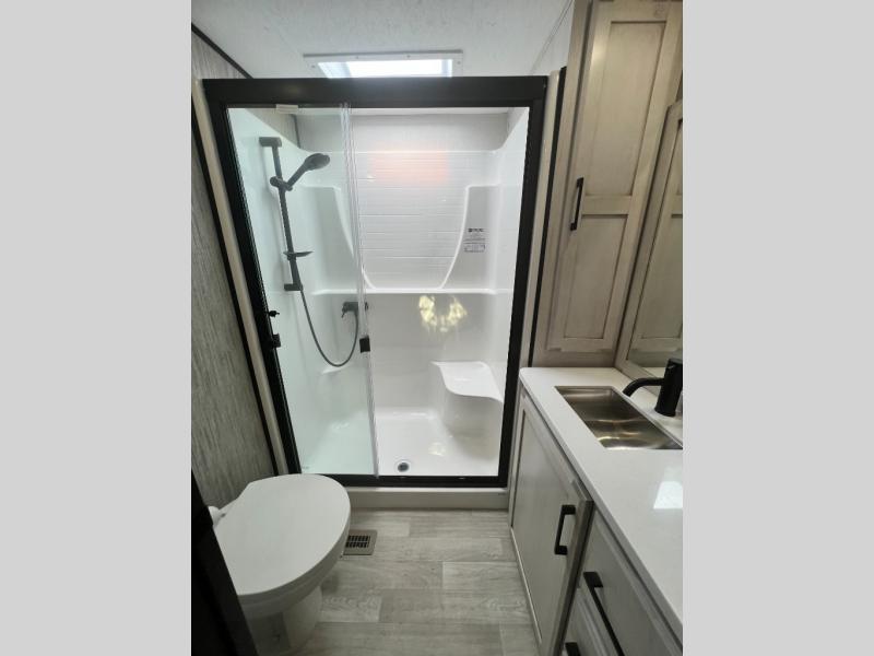 With any KZ Durango Gold full-time luxury fifth wheel, you will enjoy the new Blancher Cherry cabinetry, stainless steel appliances such as a 30" convection microwave and 24" oven with a four burner range, plus a stainless dishwasher. Other top features include an electric tilt bed with Serta Comfort foam king mattress, two 15K A/C units, plus theater seating with powered recline, heat and massage features. You will also appreciate a handy central vacuum system with attachments that stores out of sight. Each Durango Gold is constructed with six-sided aluminum framing, and has a heated, insulated and an enclosed underbelly. It is also constructed with Tufflex roofing material which is flexible, puncture resistant, and reflective. The now standard "Off The Grid" solar package includes two 200W solar panels, a 30A MPPT solar charge controller, and a 2,000W True Sine Wave inverter for off-grid capabilities. If you're wanting to go completely off-grid, you might want to choose the optional Boondocker Solar System with even more features that won't require you to be close to electric hookups!