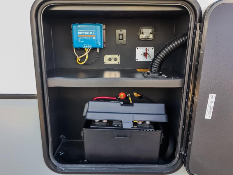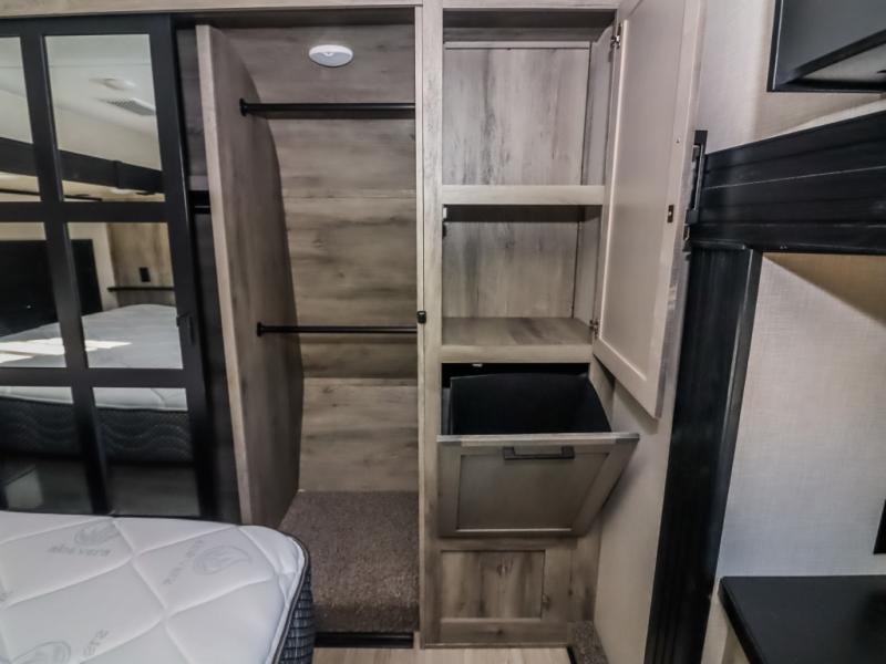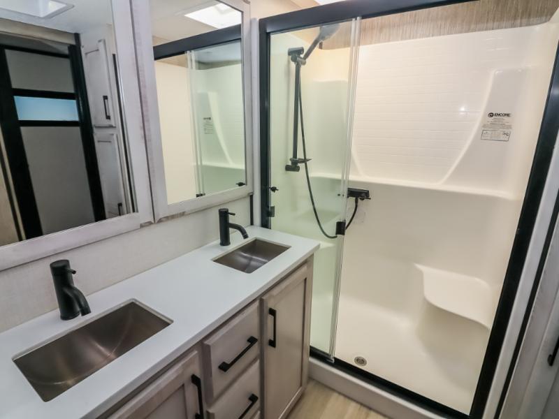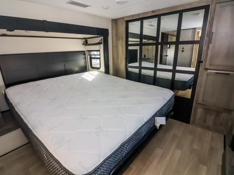 With any KZ Durango Gold full-time luxury fifth wheel, you will enjoy the new Blancher Cherry cabinetry, stainless steel appliances such as a 30" convection microwave and 24" oven with a four burner range, plus a stainless dishwasher. Other top features include an electric tilt bed with Serta Comfort foam king mattress, two 15K A/C units, plus theater seating with powered recline, heat and massage features. You will also appreciate a handy central vacuum system with attachments that stores out of sight. Each Durango Gold is constructed with six-sided aluminum framing, and has a heated, insulated and an enclosed underbelly. It is also constructed with Tufflex roofing material which is flexible, puncture resistant, and reflective. The now standard "Off The Grid" solar package includes two 200W solar panels, a 30A MPPT solar charge controller, and a 2,000W True Sine Wave inverter for off-grid capabilities. If you're wanting to go completely off-grid, you might want to choose the optional Boondocker Solar System with even more features that won't require you to be close to electric hookups!