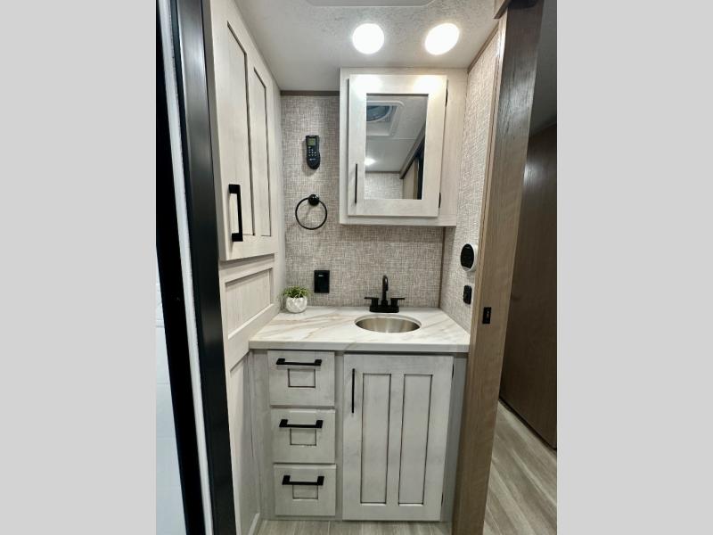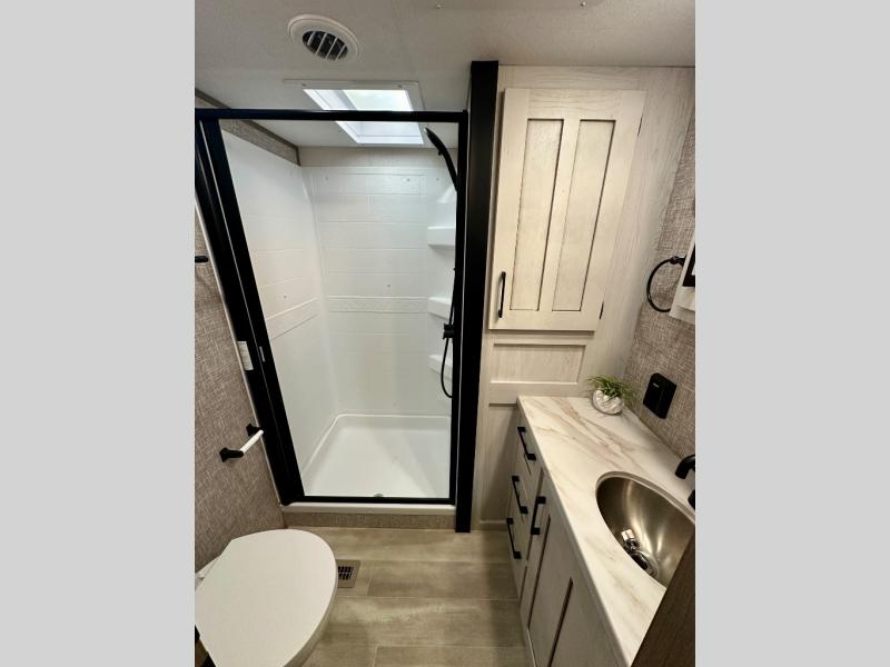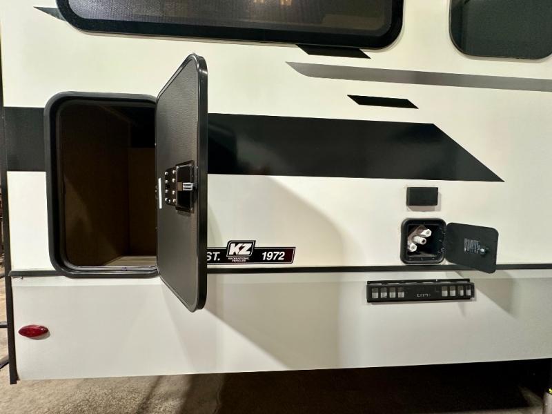 Each Durango Half-Ton fifth wheel by KZ provides lightweight towing with interior luxuries galore! Controlling the functions of your unit will be a breeze with the KZ Engage powered by OneControl that includes a 7" touchscreen to control awnings, lights, tanks, and more. There are so many exterior conveniences to make each trip enjoyable, like the Durango Towing Package, metal latches on the baggage doors, heated water convenience center, and the flip-up main entry steps! Durable construction includes Tufflex PVC roofing, laminated Azdel composite panels, and a reinforced heavy-duty fiberglass front cap. The interior will feel more like a residential home with new Blancher Cherry cabinets, seamless countertops, a spacious shower, a redesigned front bedroom, and smart storage spaces! You can also customize your fifth wheel to fit your needs with available options, such as, generator prep, backup camera prep, a full-timers desk in place of the dinette table, and so much more!