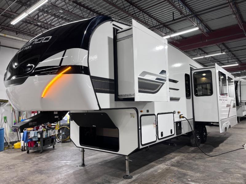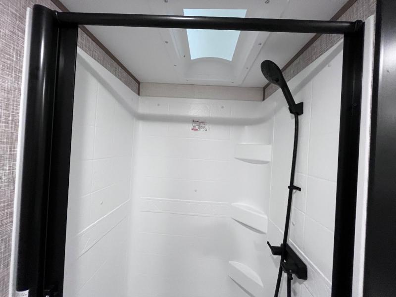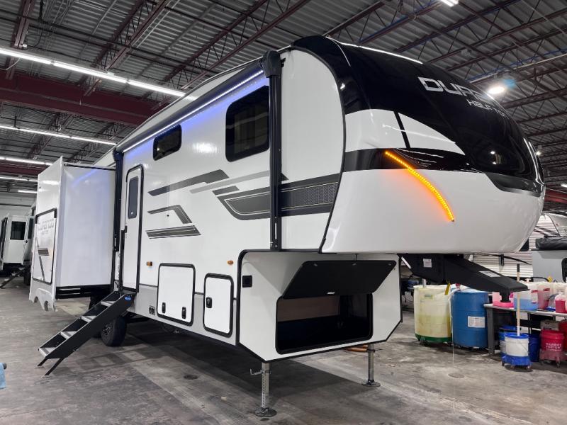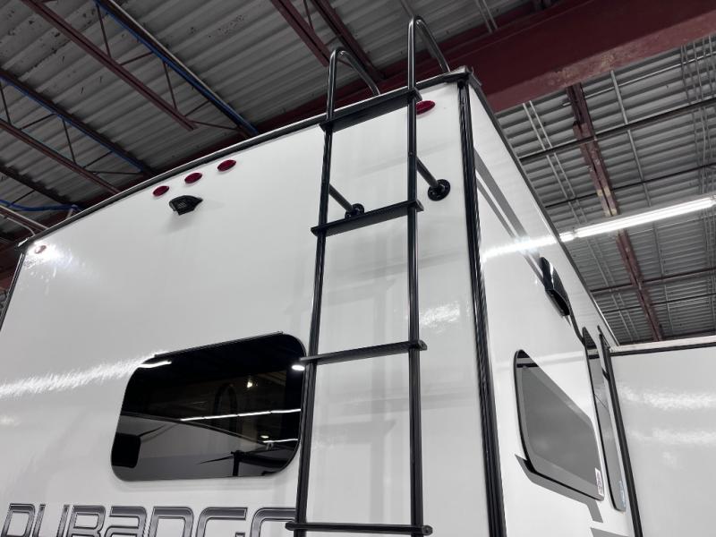 Each Durango Half-Ton fifth wheel by KZ provides lightweight towing with interior luxuries galore! Controlling the functions of your unit will be a breeze with the KZ Engage powered by OneControl that includes a 7" touchscreen to control awnings, lights, tanks, and more. There are so many exterior conveniences to make each trip enjoyable, like the Durango Towing Package, metal latches on the baggage doors, heated water convenience center, and the flip-up main entry steps! Durable construction includes Tufflex PVC roofing, laminated Azdel composite panels, and a reinforced heavy-duty fiberglass front cap. The interior will feel more like a residential home with new Blancher Cherry cabinets, seamless countertops, a spacious shower, a redesigned front bedroom, and smart storage spaces! You can also customize your fifth wheel to fit your needs with available options, such as, generator prep, backup camera prep, a full-timers desk in place of the dinette table, and so much more!