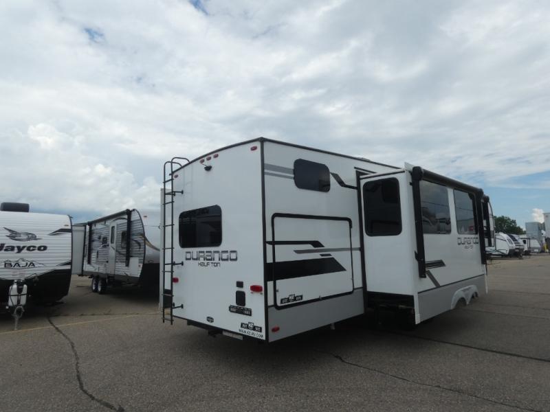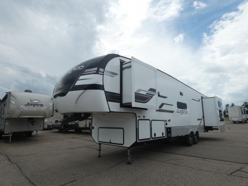 Each Durango Half-Ton fifth wheel by KZ provides lightweight towing with interior luxuries galore! Controlling the functions of your unit will be a breeze with the KZ Engage powered by OneControl that includes new integrated buttons & screen to control awnings, lights, tanks, and more. There are so many exterior conveniences to make each trip enjoyable, like the Dexter® axles with self adjusting brakes & height adjusting hangers metal latches on the baggage doors, heated water convenience center, and the flip-up main entry steps! Durable construction includes Tufflex PVC roofing, Pex® in-floor heated waterlines & kitchen gray pipes, and a reinforced heavy-duty fiberglass front cap.