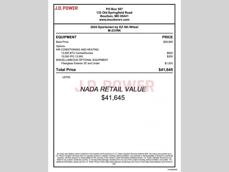Used 2024 KZ Sportsmen 231RK Fifth Wheel