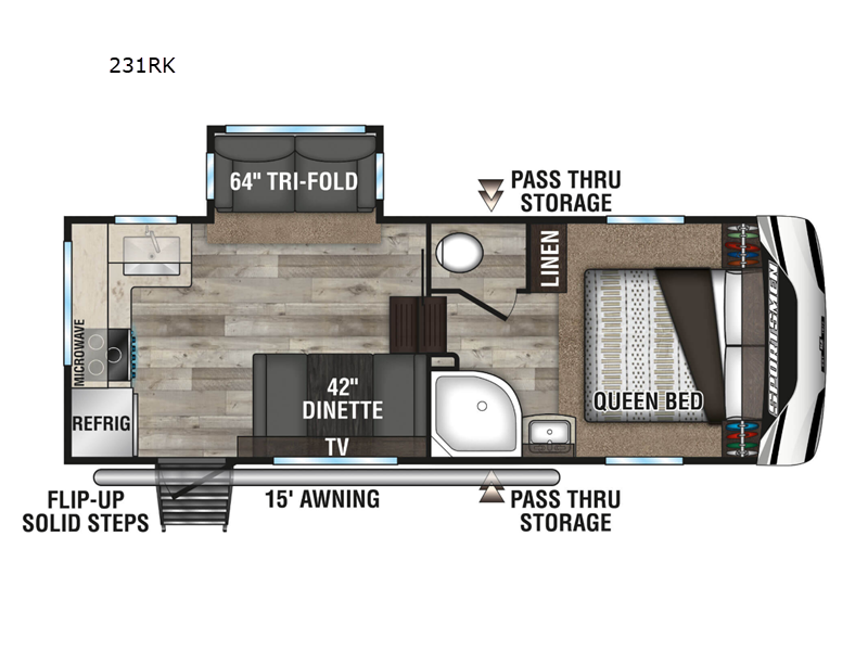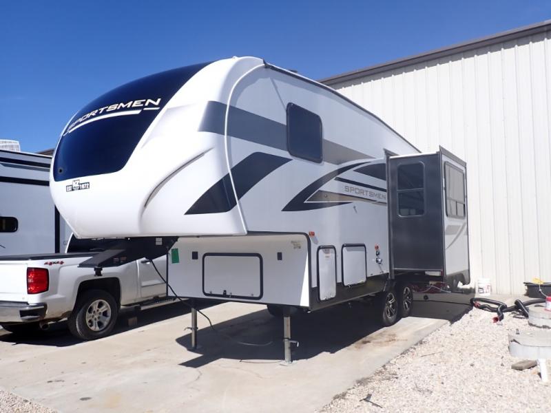The Sportsmen 231RK is a value-packed fifth wheel perfect for a couple. This is a rear kitchen floor plan. Several upgrades will make your trips more enjoyable including theater seating & a second A/C.