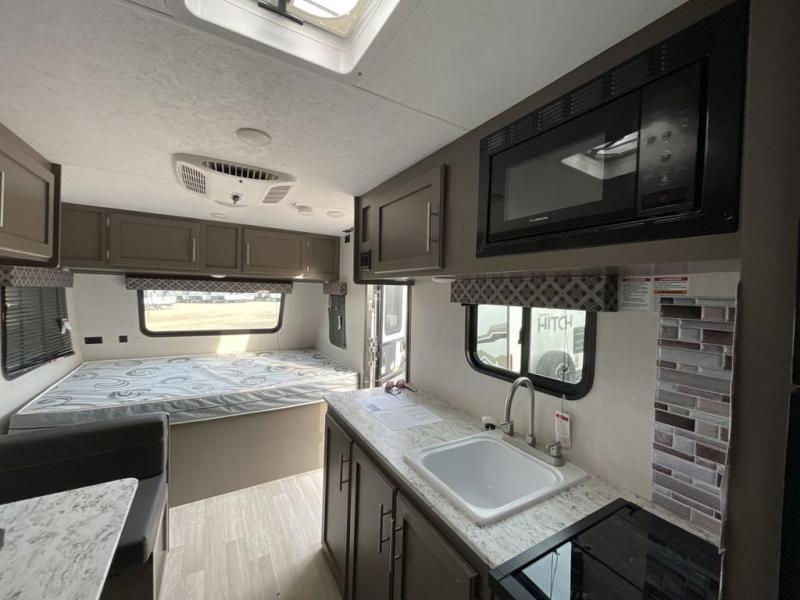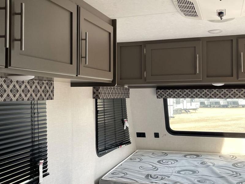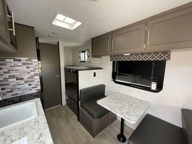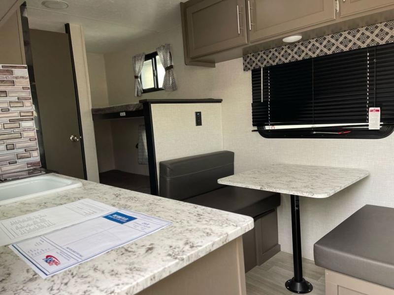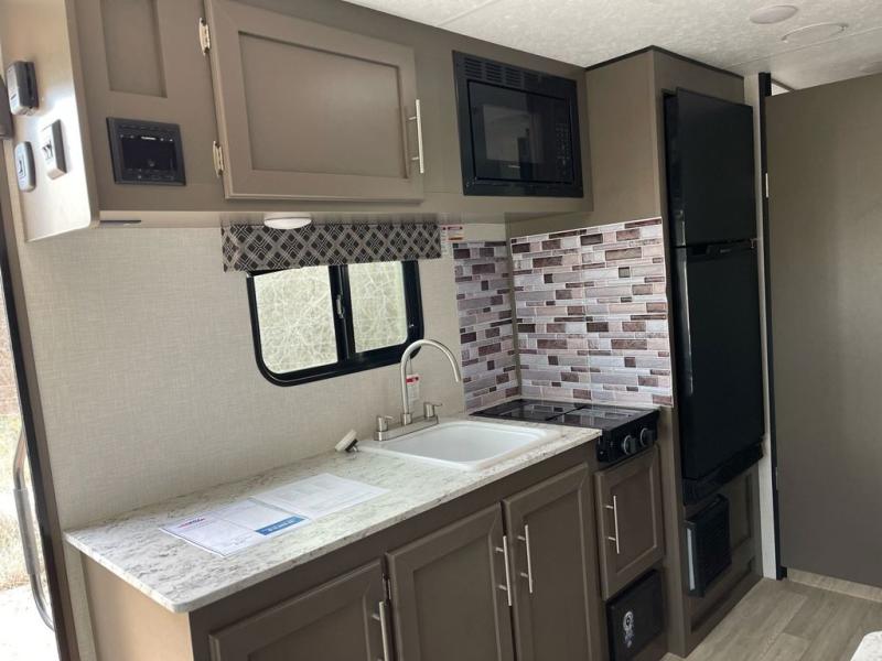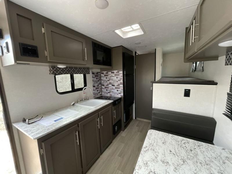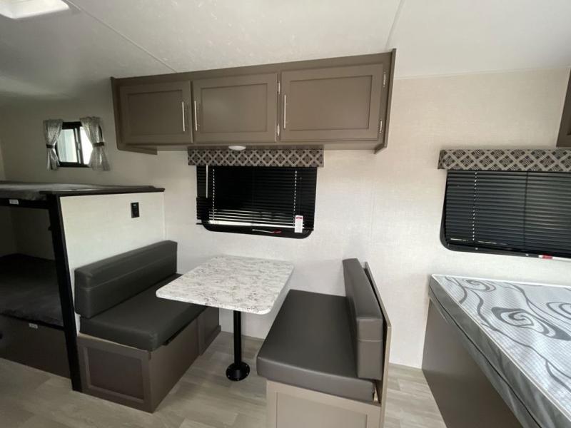 Bunk beds make this travel trailer the perfect family-friendly unit, so head to your local state park! The front 54" x 80" bed will provide comfortable sleeping space for you, plus there is a booth dinette for one or two little ones to sleep on. This model includes a two burner cooktop, a microwave oven, plus a single bowl sink for hassle-free clean up. The 13' power awning will protect you from the elements, and the pass-through storage will be perfect for fishing poles.