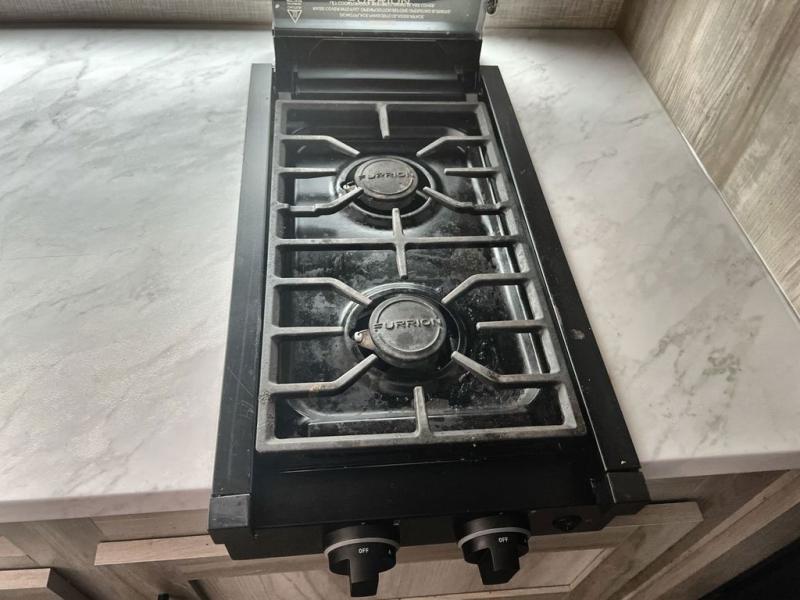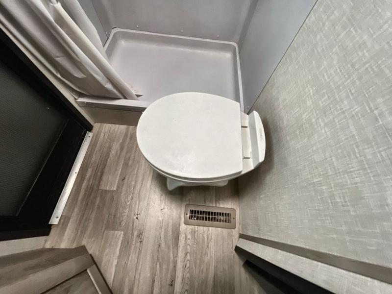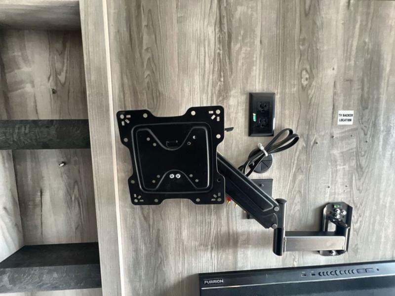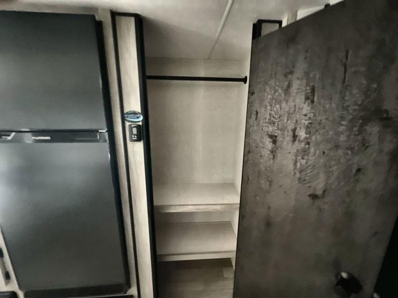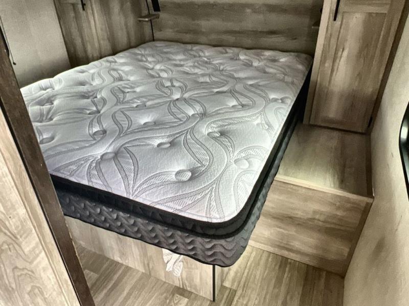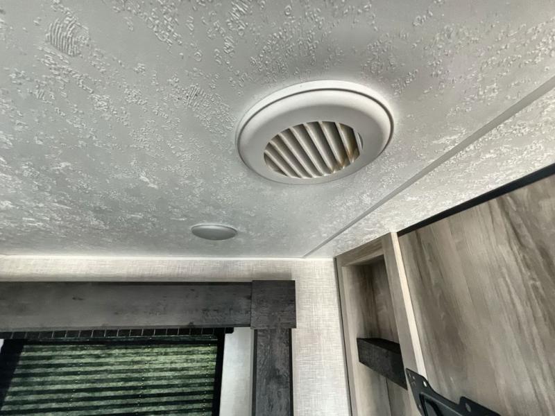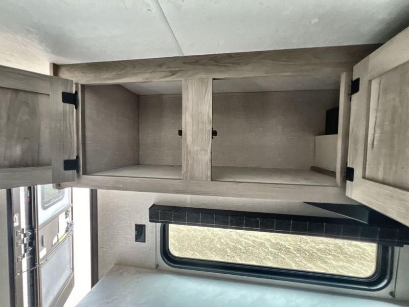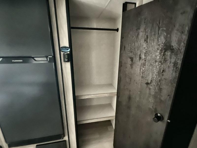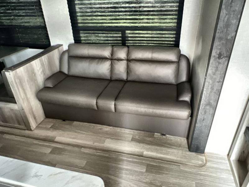 This bunkhouse model is perfect for your whole crew! Your guests or little ones will love the double-size bunk, while you take the queen bed in the front private bedroom. The large slide out will create an open living area, and here you'll find the 70" jackknife sofa and 41" booth dinette, both of which can also convert to extra sleeping space. The full bath has its own exterior entry door for convenience, and the second entry door opens up to the main living area. There is plenty of storage space in this model, including a wardrobe/pantry in the kitchen, dual wardrobes in the bedroom, an exterior pass-through storage, and even an exterior trunk door under the bunks to easily fit in all your gear!