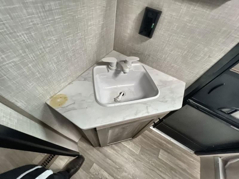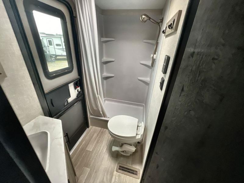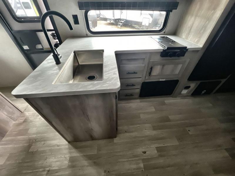 With any Sportsmen Select travel trailer by KZ, you will enjoy premium features at an affordable price, making them perfect for rookie RVers! Each model is constructed with an aerodynamic front profile with a smooth metal front for better fuel efficiency, and the nitrogen filled tires and power tongue jack will make towing easier then ever. There are is also a Key-Alike system for entry and baggage doors to keep your belongings secure, plus backup camera prep and solar roof prep means you can easily add these features to make camping that much smoother. An omnidirectional HDTV antenna with Wi-Fi prep will give you the option to stay connected as you camp, and a multi-media sound bar stereo with Bluetooth, HDMI and USB charge will ensure you'll never go bored on rainy days. The interior of these travel trailers include seamless countertops with a deep undermount stainless steel kitchen sink, a black residential kitchen faucet, wider pocket/passage doors, and residential grade linoleum.