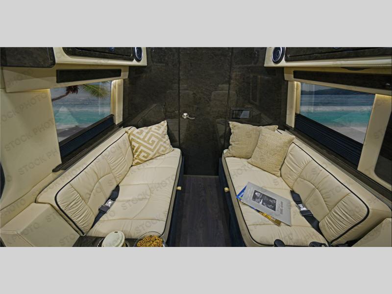 Just imagine you and seven others traveling to a local tournament or festival with this Daycruiser 144 Class B diesel van. This coach will safely carry everyone in comfort with the Maybach-style seating. Two people can even take a nap on the sofa/foldout beds while the others enjoy the great outdoors once you have reached your destination. The passengers may decide to watch the LED HDTV and listen to the movie through the wireless head phone system. Someone can even heat up soup or leftovers in the overhead 110V microwave and grab a drink from the refrigerator. And the rear wall entry door offers more safety and convenience, so take a look today!