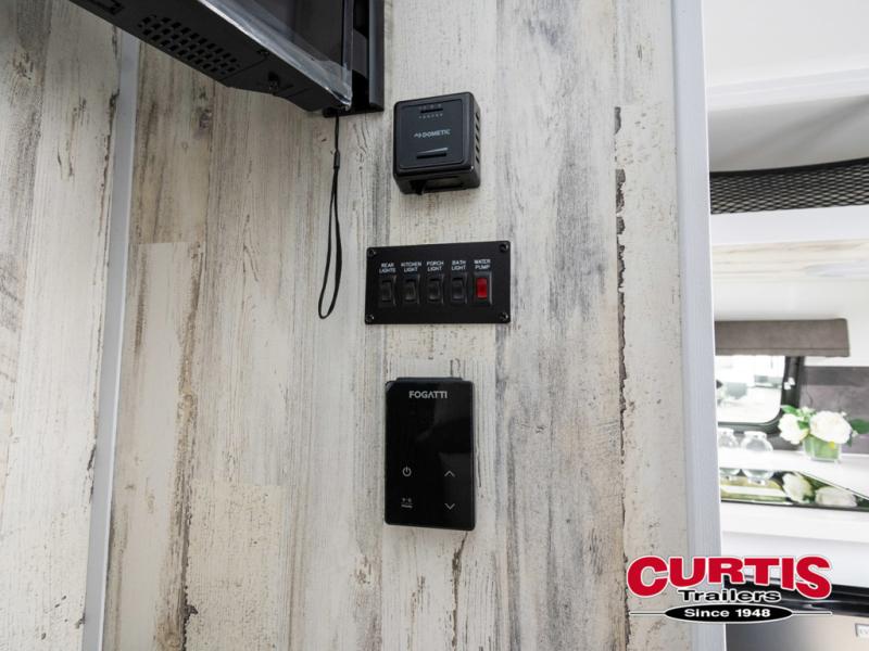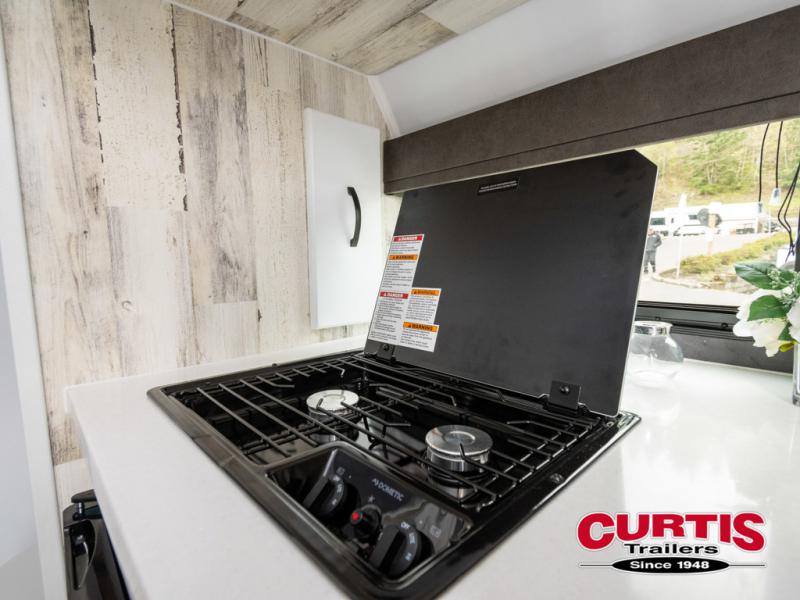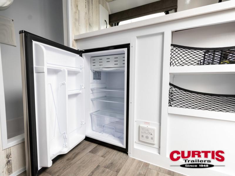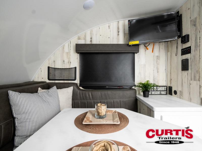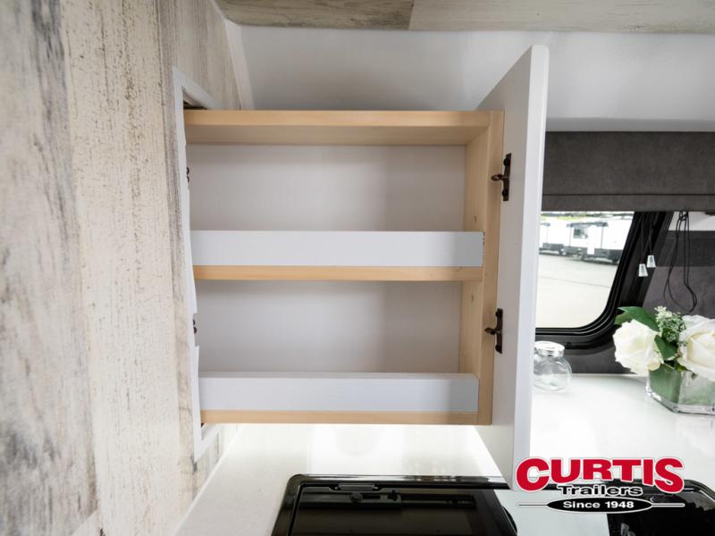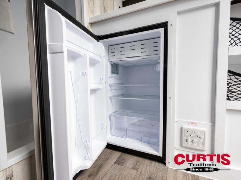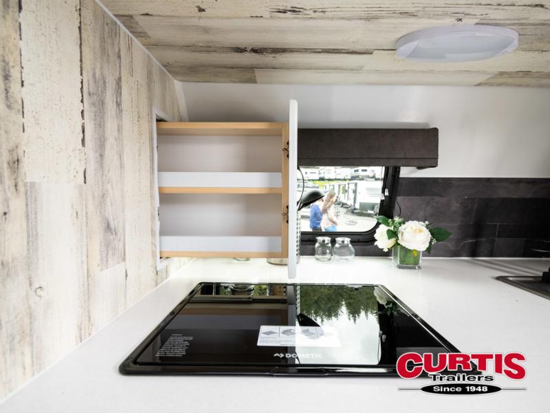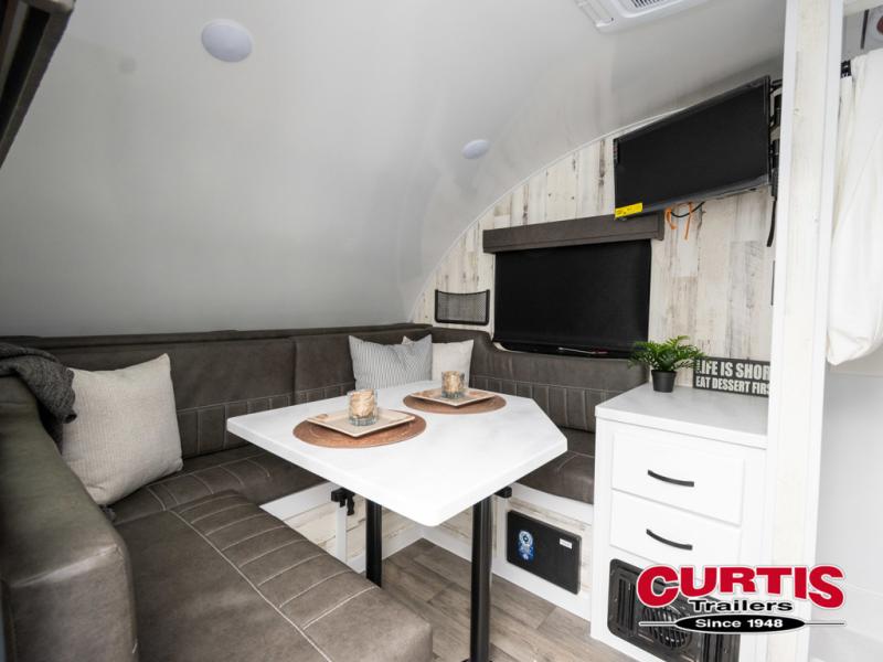 Bring the conveniences of your home with you to the campground in this teardrop trailer! The thoughtfully designed kitchen includes a pull out drawer for spices, a solid surface Corion countertop with backsplash, a water proof paper towel holder, a solid surface sink with faucet for easy clean up, and an Ever Chill Fridge to enjoy cold beverages. You will get a good night's rest on the comfy 6" memory foam mattress that also converts into a dining room table with seating. The bathroom has a Dometic toilet, a shower, and a two way vent fan to eliminate the steam. Plus, you have an outside shower/spray port to rinse the mud off your feet before entering inside. Store all of your gear in the 36" x 14" exterior baggage door with nylon organizer pockets, and you will also appreciate the waterproof storage organizer!