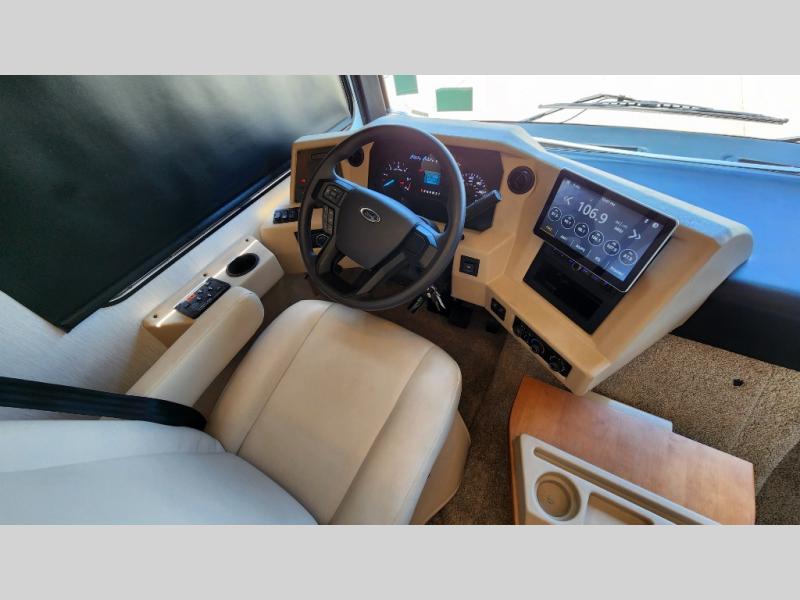 Each Bay Star Sport Class A gas motorhome by Newmar sits on a Ford F-53 chassis with a 7.3-liter V8 engine to power trips both near and far! The gelcoated fiberglass exterior sidewalls are ultra durable, along with the DiFlex II roof with a walkable deck. As soon as you enter the coach you'll be met with luxury features such as polished solid surface countertops in the kitchen and Calypso Glazed Maple cabinetry. There are also pleated window shades, carpeting on all slide out floors, plus decorative wall art for a more at-home feel. Each model includes a rearview colored monitor system with audio, cruise control, and an anti-lock braking system the driver is sure to appreciate, and they may just decide to add the optional six-way power driver seat for even more comfort. The affordable Bay Star Sport is your ticket to adventure on the road!