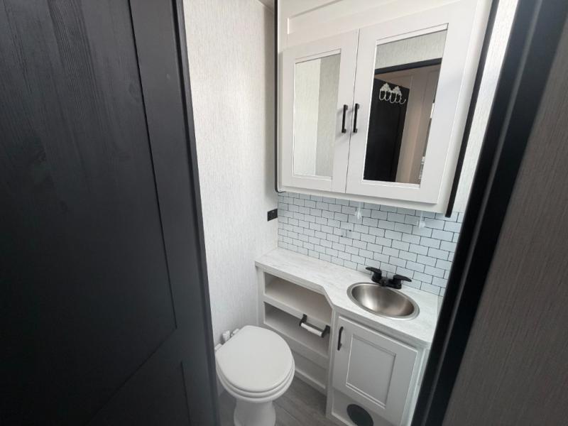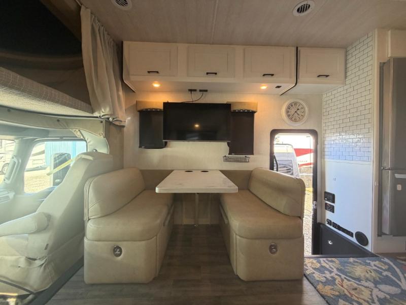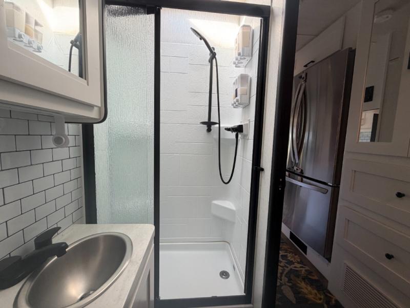 Traveling with your spouse or family is made easy in this coach from the spacious interior with two slide outs to the full bathroom allowing you to skip the public facilities! The cook will love the kitchen amenities including the 20.7 cu. ft. residential refrigerator, the stainless steel appliances, and the solid surface countertops. The kids or grandkids will love the cab over bunk and you will enjoy the RV queen bed in the rear bedroom. You will find storage throughout the inside and the outside, plus many more features you are sure to love!