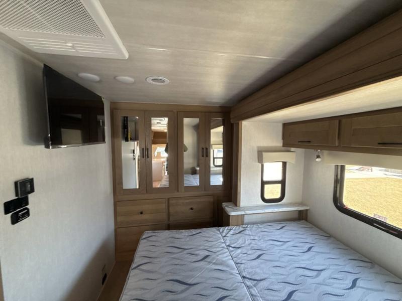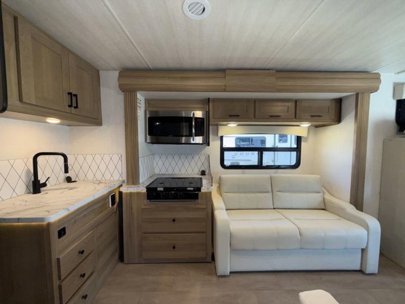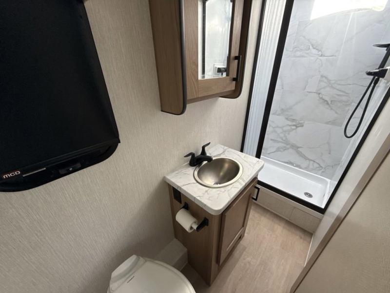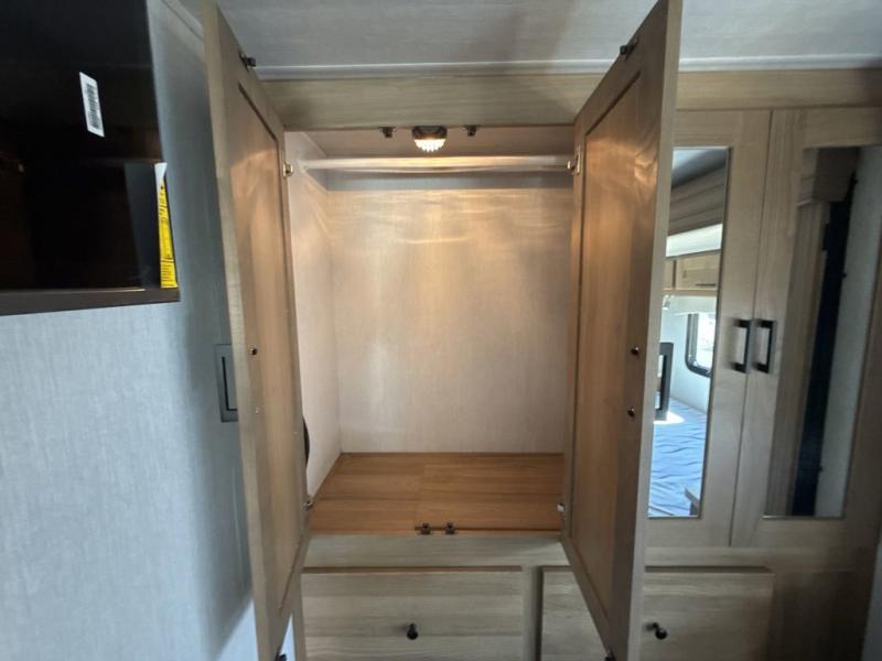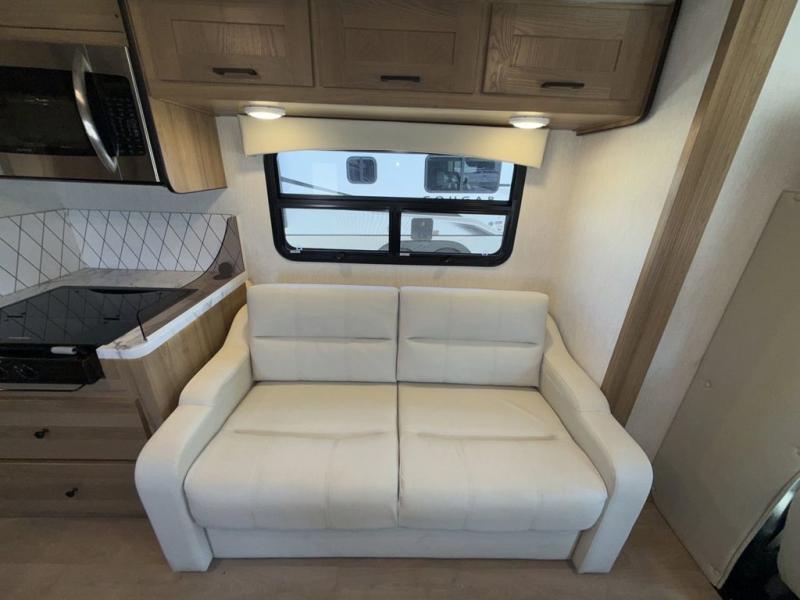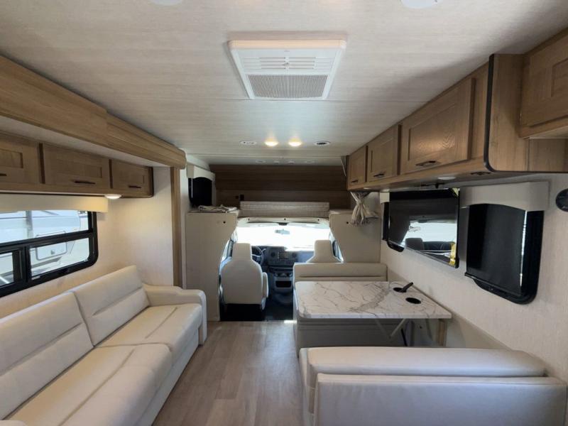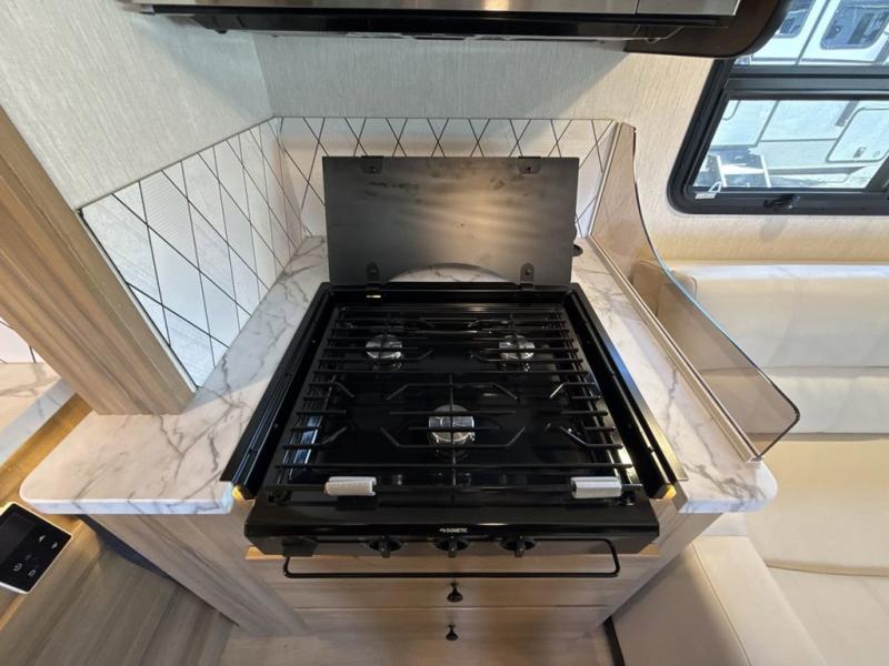 Pack your bags and load up this motorhome for a fun vacation on the road! The rear corner bedroom has a 72" x 74" bed slide for more walking around space and a large wardrobe to keep your clothes looking their best. Speaking of clothes, you can add an optional washer and dryer just outside the rear corner bathroom to have clean clothes the entire time. There is a 24" x 32" shower to freshen up in after a long day of traveling, and you can fill your belly with a home cooked meal with the three burner cooktop and 10 cu. ft. 12V refrigerator that will keep your perishables fresh. Eat your meals at the booth dinette then let your stomach settle as you lay on the 64" hide-a-bed sofa!
