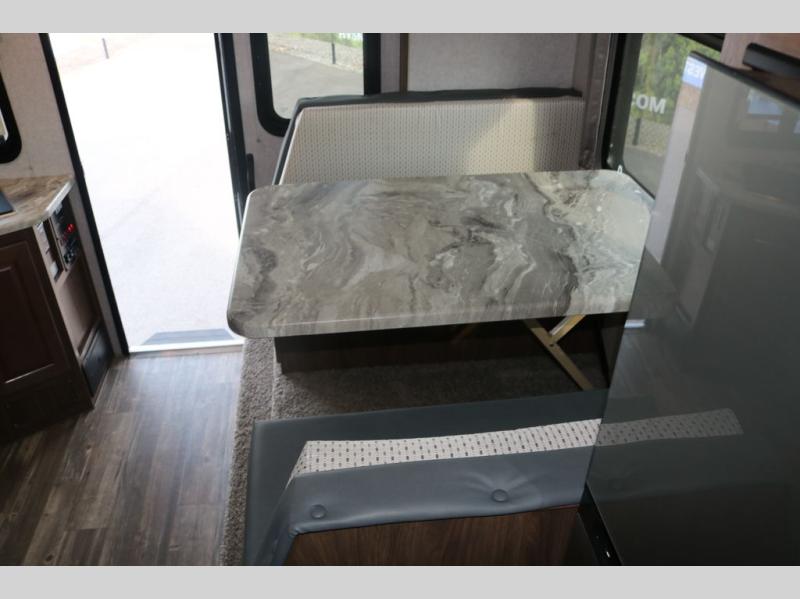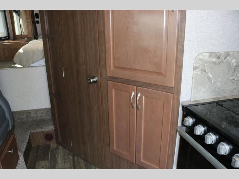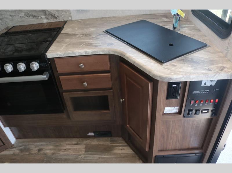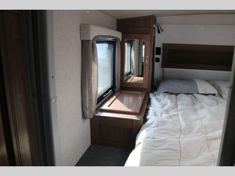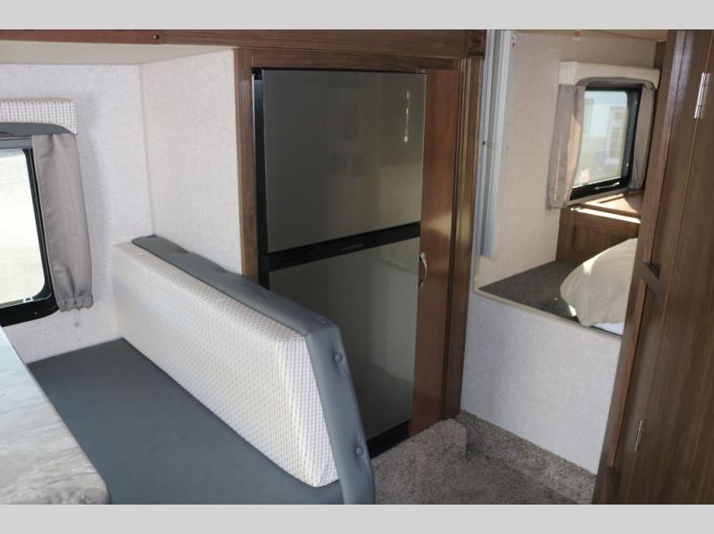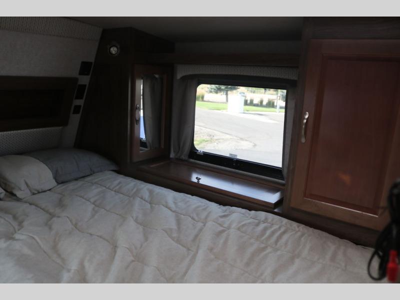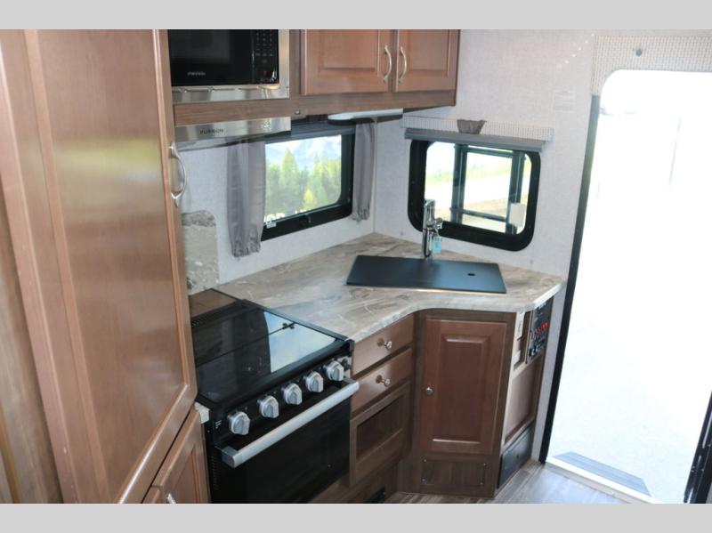 When you like to travel with your truck and your boat or trailer, this truck camper makes sense, plus gives you all the comforts you will need after a day on the water or playing around camp. The booth dinette, the 7 cu. ft. large 2 way fridge plus the pantry are within a slide giving you more floor space to move from the rear entry to the front bed where you can sleep like a queen on the NW TruRest mattress. There are three wardrobes and two hampers up front, and a space to add a TV option. The dry bath is centrally located and offers an angled shower and storage, and the kitchen provides stainless steel appliances and a single basin sink. Extra sleeping space is found on the converted dinette and you can add an optional bunk, plus you will find more storage in overhead cabinets and another wardrobe.