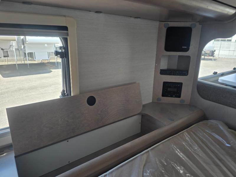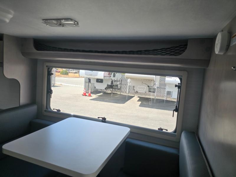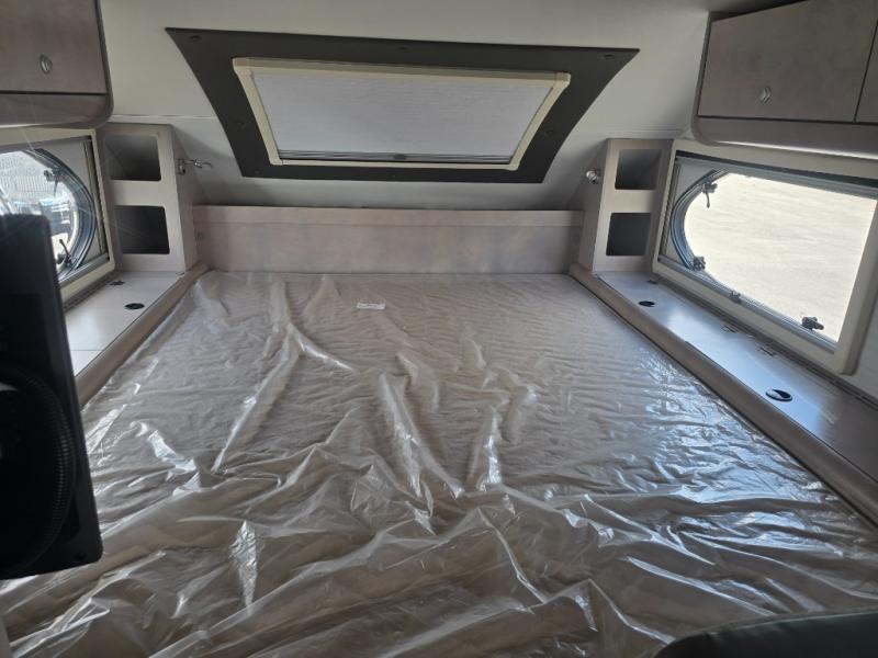 You will find a pass-thru window on this Cirrus truck camper. The exterior has a Maggie roof rack for bringing along extra gear, and there is a motorized 8' side awning to protect you while you're living life outside. The convection microwave/oven is going to make your meal prep easier and faster, and the air conditioning will keep this camper's interior at a desirable temperature even when it's hot outside. This model also comes with an HDTV dish and a great sleeping area with the Froli sleep system.