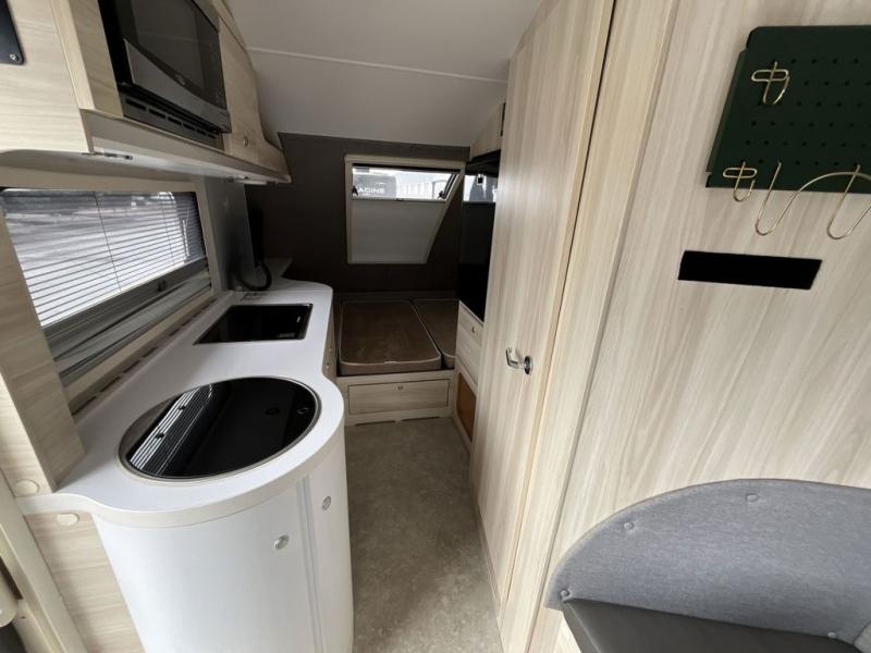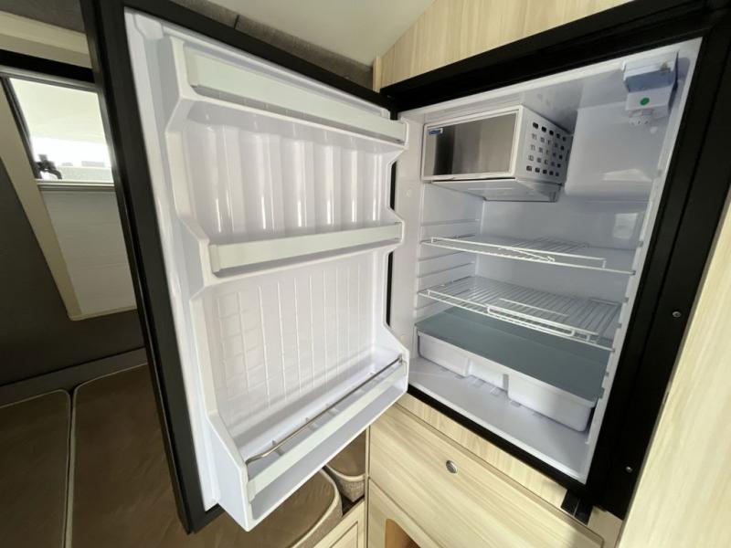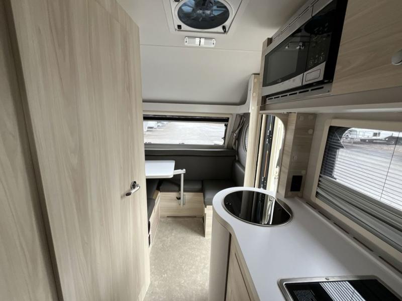 This teardrop trailer offers sleeping space for three with two sleeping areas; one up front and one in the rear. The dinette allows you to eat and relax during the day, and at night this space becomes sleeping space for one. The queen-size sleeping area is located on the opposite side with the wet bath in between for convenience for all. The galley kitchen will give the cook a place to make warm meals and store leftovers in the 4.6 cu. ft. 12V compressor refrigerator. Everyone can watch the 24" TV through the Bluetooth media center before bedtime, or in the morning as you all plan your next activity. And the Alde central heating/hot water system, as well as central air conditioning will keep you comfortable where ever you set up. If you enjoy more off-road type camping, consider the optional Boondock and Black Canyon package and Lithium battery upgrade which will allow you to go off-grid. The Lithium battery upgrade includes 400 Ah 12V lithium battery bank with internal heat and a 3,000 watt inverter/charger. Please note: The model specs. shown are for the classic TAB 400.