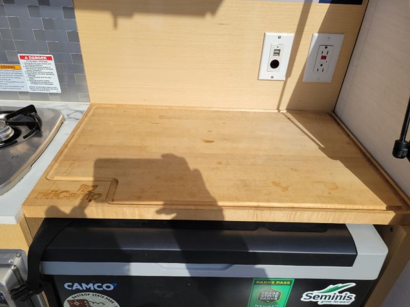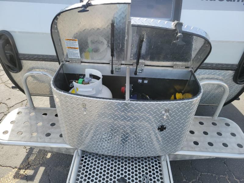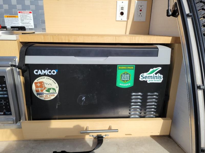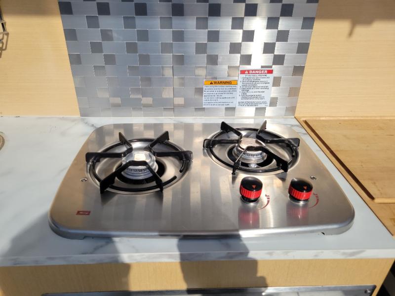 With any nuCamp RV TAG teardrop trailer, you can bring some of the comforts of home with you as you easily tow this lightweight trailer to the campgrounds. The outdoor kitchen includes a stainless steel sink and two-burner stove so you won't have to cook over a campfire each day. Inside, you'll find a composite floor, deluxe Amish cabinetry, sleeping accommodations, and a power roof fan to keep you comfortable. You will also appreciate the Convenience Package that comes with a 180-watt solar panel, a portable Bluetooth speaker, a 100 Ah 12-volt Lithium battery, and more!