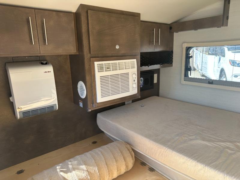 The optional Black Canyon upgrade comes with an additional 120W solar panel, a water heater, holding tank heaters, under-glow lights, and a tri-fold multifunction mattress. The Black Canyon upgrade has a tongue weight of 168 lbs. and a gross weight of 1,622 lbs.
