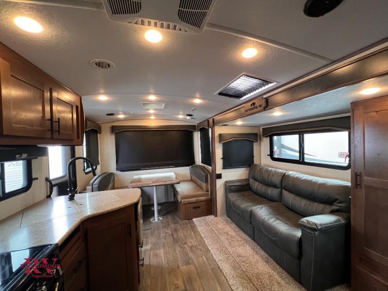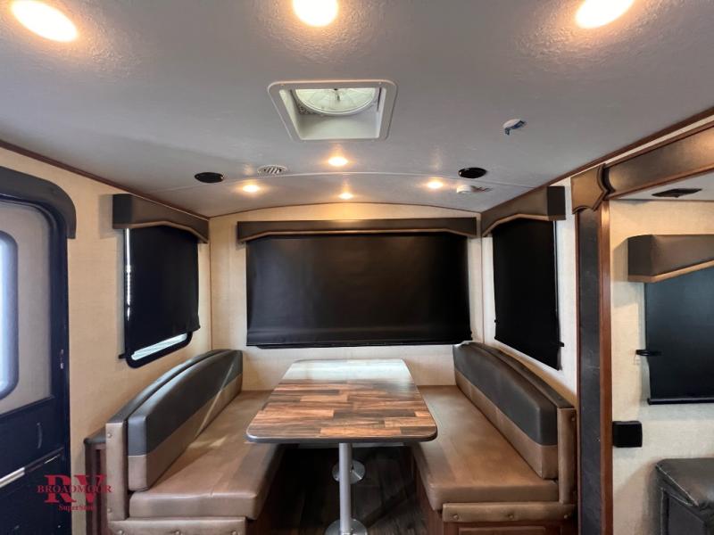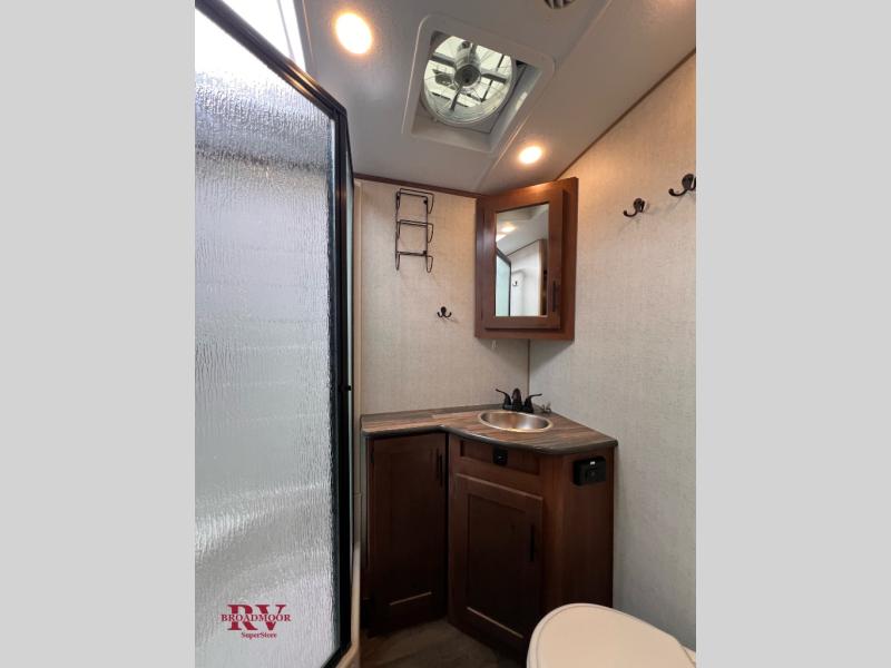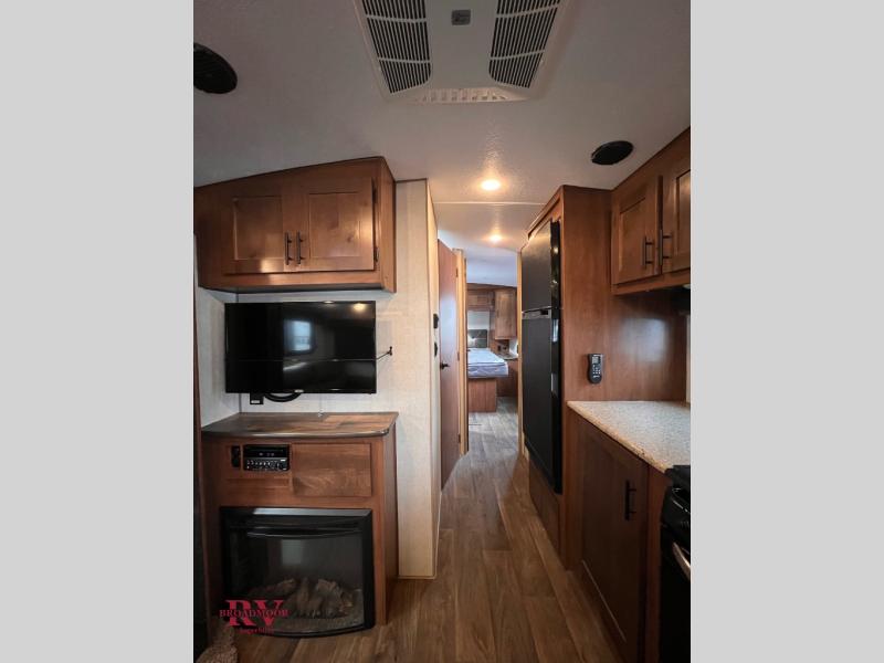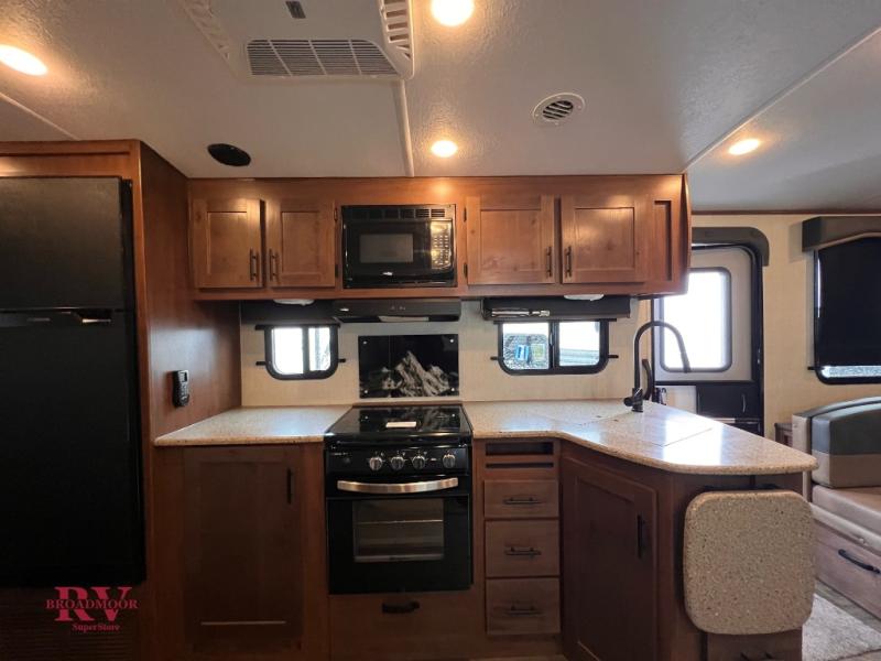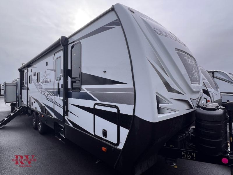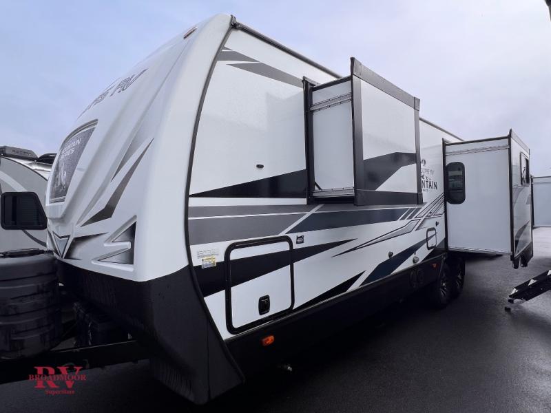 This dual entry travel trailer will be perfect for your trips to the mountains. The rear mountain dinette includes a large window for outdoor views, and you'll find additional seating space on the sleeper sofa. The chef of your group can work up their magic in the full kitchen that includes a sunken range and a flip-up counter for more counter space. Within the front private bedroom you'll find a queen bed, wardrobes on either side of the bed, plus a wardrobe slide for more space and storage.