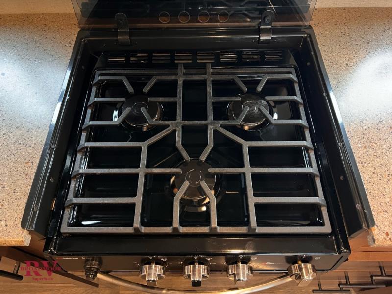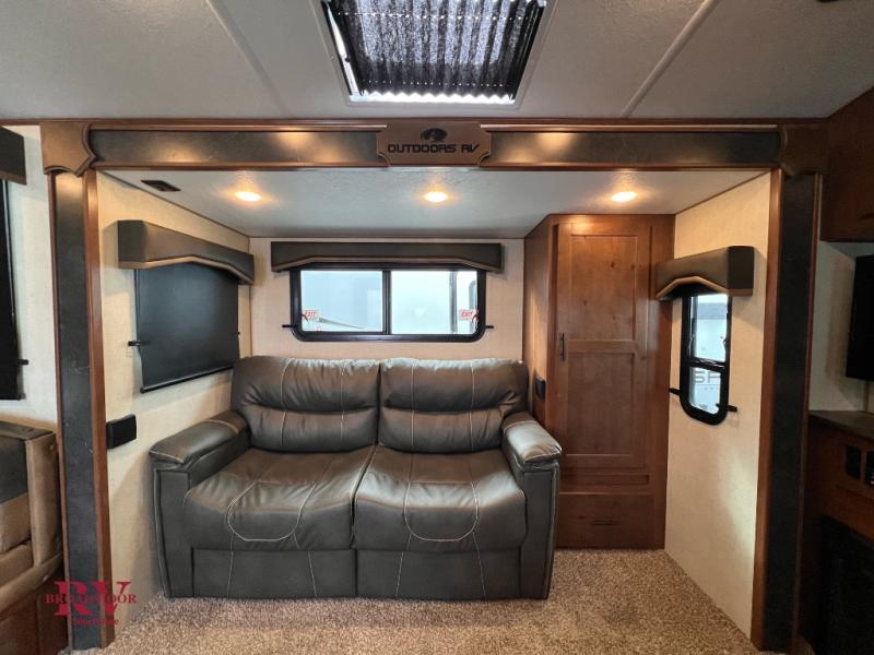 With any Black Stone Mountain Series travel trailer by Outdoors RV you will enjoy climate designed four seasons camping thanks to the thermal pane windows and the fully enclosed, heated, and insulated underbelly. The custom built chassis and rugged integrated A-frame are built for strength and durability, along with the rugged 2" bonded aluminum frame walls. Each model includes LG solid surface countertops, granite designed backsplash, vaulted radius ceilings, and a mountain comfort premium mattress for all-around comfort. You will also love the XL panoramic slide out windows and the dual pane living room skylight with a shade to let natural light in!