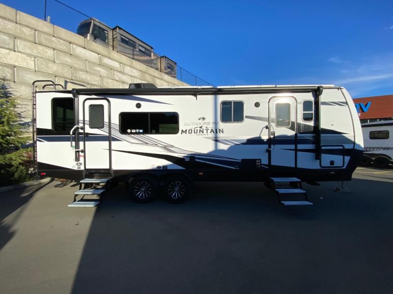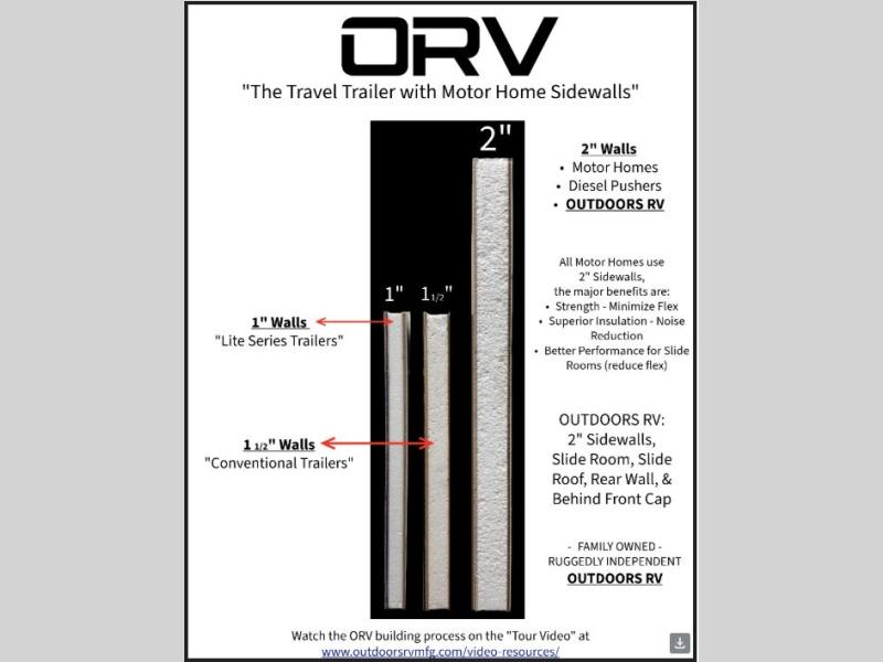 With any Timber Ridge Mountain Series travel trailer by Outdoors RV you will enjoy climate designed four seasons camping thanks to the thermal pane windows and the fully enclosed, heated, and insulated underbelly. The custom built chassis and rugged integrated A-frame are built for strength and durability, along with the rugged 2" bonded aluminum frame walls. Each model includes LG solid surface countertops, granite designed backsplash, vaulted radius ceilings, and a mountain comfort premium mattress for all-around comfort. You will also love the XL panoramic slide out windows and the dual pane living room skylight with a shade to let natural light in!
