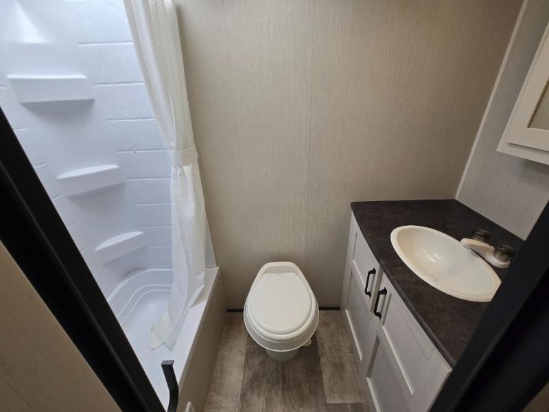 One of the standout features is the rear full bathroom, providing a spacious area for all your bathroom needs. It’s designed for both comfort and convenience, making it easy to freshen up after a day of adventure.