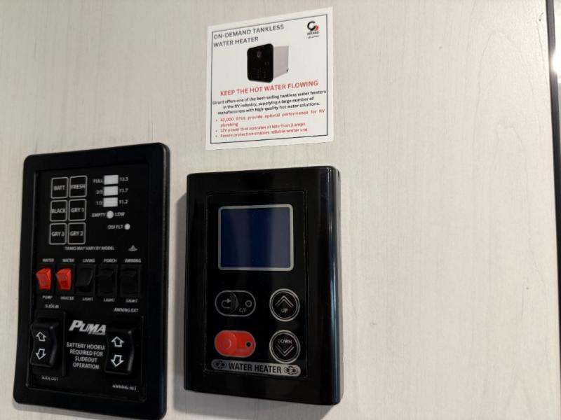- Equipped with a Tankless Water Heater for on-demand hot water