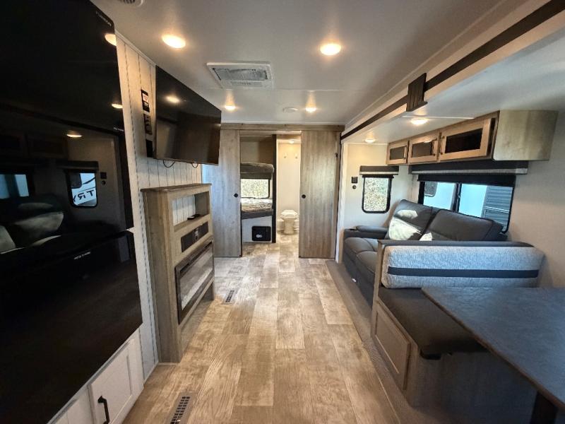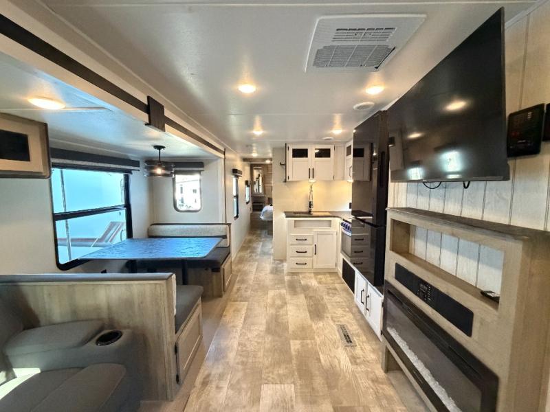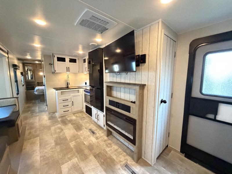 Designed with families in mind, the Palomino Puma 29BHQB delivers a smart bunkhouse layout, a rare bath and a half floorplan, and the convenience of dual entry doors. With generous storage, comfortable sleeping spaces, and an inviting fireplace-equipped living area, this travel trailer is ready to make every camping trip more enjoyable.