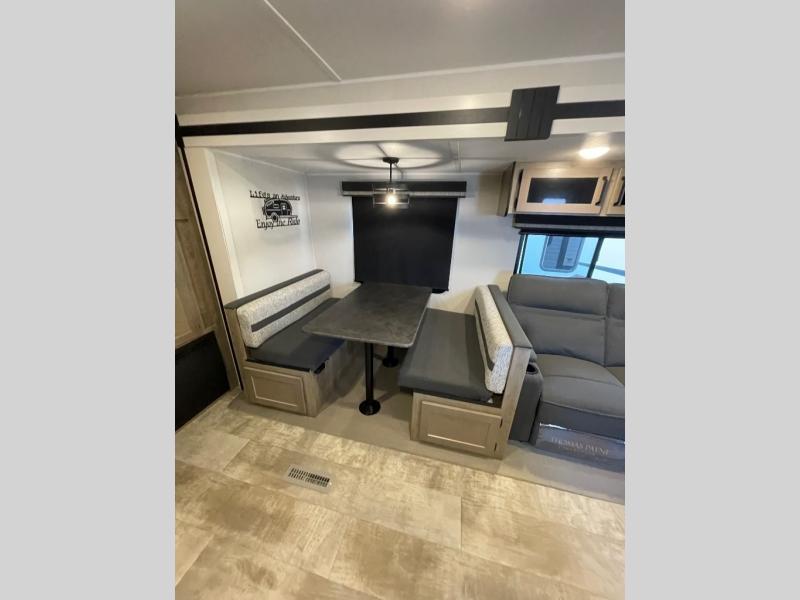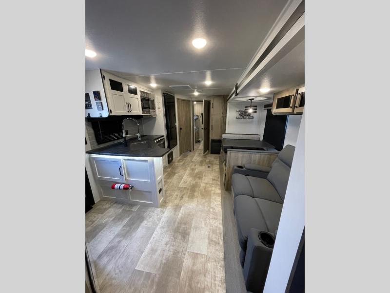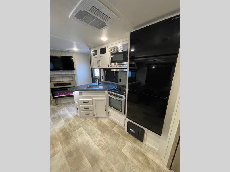 If you're looking for family-fun adventure then you need one of these Palomino Puma fifth wheels or travel trailers! They are built rugged, easy to tow, and jam packed with features. The Darco wrapped underbelly will protect your units vitals through every season and the AlphaPly roofing membrane covers it. They also have super lube axles and a powder coated frame. Their luxurious interiors feature a spice rack and built-in knife rack in the kitchen, USB charging ports to keep your electronics at 100%, and high density foam mattresses for a good night's rest. The required Advantage package comes with night roller shades for privacy at night, two outside speakers to crank up the tunes while you play cornhole, and an outside shower to keep the dirt outside where it belongs, plus so much more!