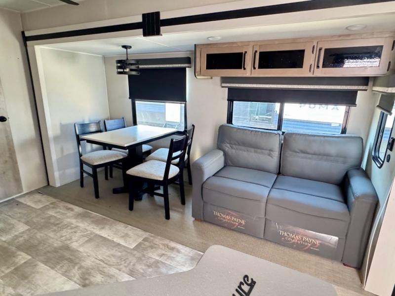 Each Puma Destination trailer by Palomino is designed to give you unforgettable getaways to the destination of your choice! The AlphaPly roofing membrane and powder coated frames are what make these models ultra durable, and the super lube axles will provide smooth towing from home to campground. The Value Shopper Package includes Beauflor linoleum, an AM/FM/Bluetooth stereo, a high-rise faucet with a sprayer, bedroom TV hook-up, and many many more conveniences. You'll find the designer window treatments in the living room and decorative kitchen backsplash will make your space feel more like home, plus there are USB charging ports for your electronics and plenty of storage space for all your belongings. And you can add the optional Marquis Edition Package that includes an outside shower, a solid surface countertop, two exterior speakers, and more features that will add to your comfort!