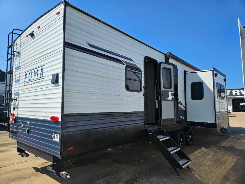 Each Puma Destination trailer by Palomino is designed to give you unforgettable getaways to the destination of your choice! The AlphaPly roofing membrane and powder coated frames are what make these models ultra durable, and the super lube axles will provide smooth towing from home to campground. The Value Shopper Package includes Beauflor linoleum, an AM/FM/Bluetooth stereo, a high-rise faucet with a sprayer, bedroom TV hook-up, and many many more conveniences. You'll find the designer window treatments in the living room and decorative kitchen backsplash will make your space feel more like home, plus there are USB charging ports for your electronics and plenty of storage space for all your belongings. And you can add the optional Marquis Edition Package that includes an outside shower, a solid surface countertop, two exterior speakers, and more features that will add to your comfort!