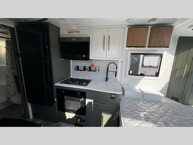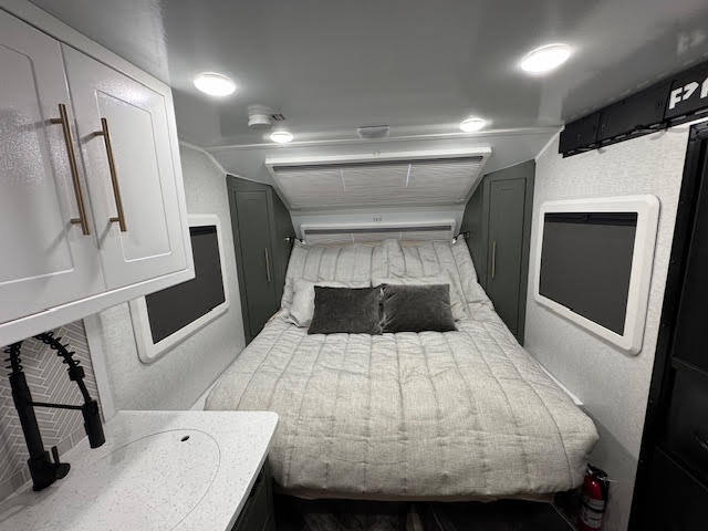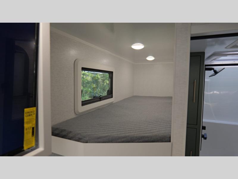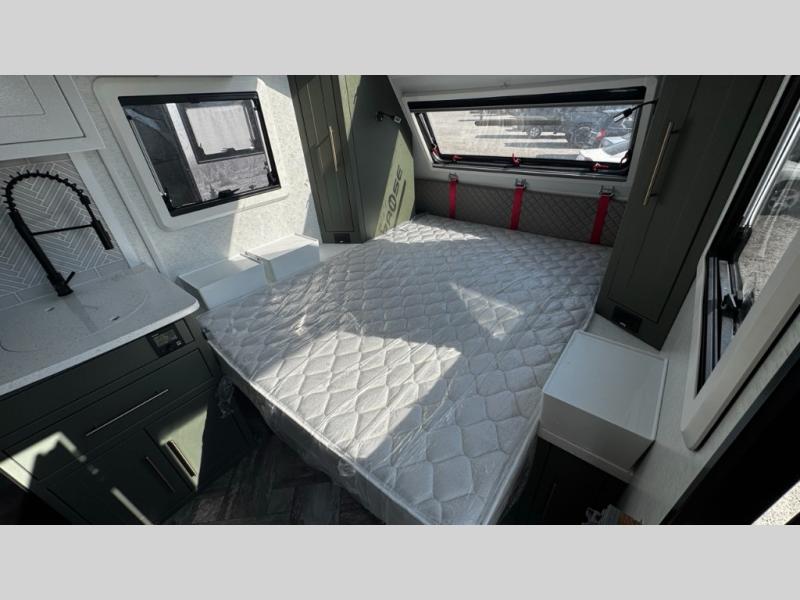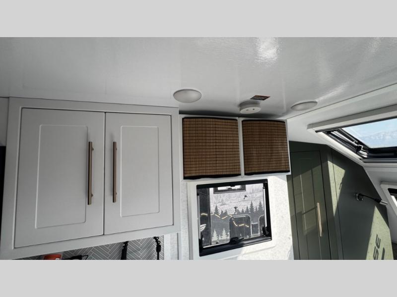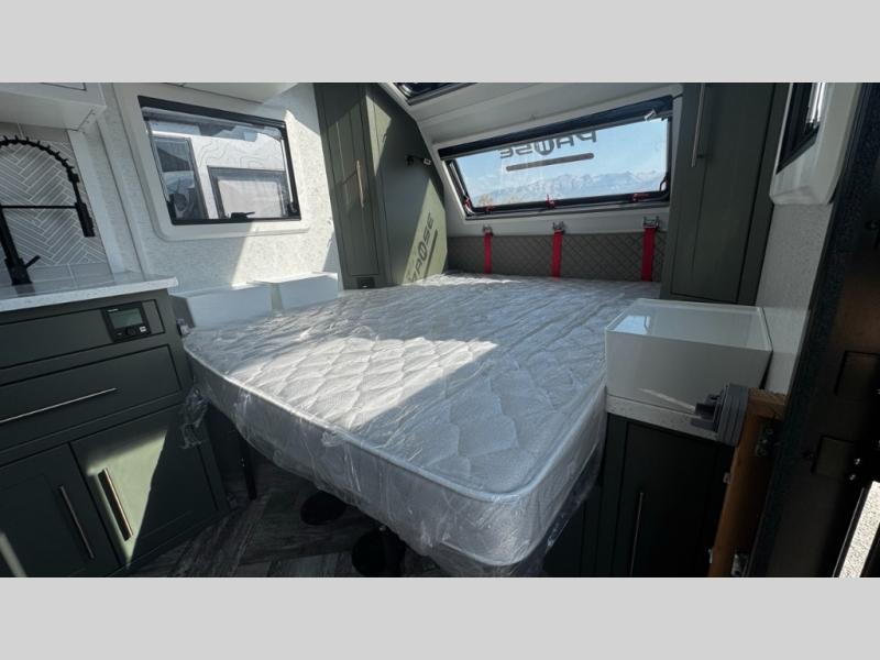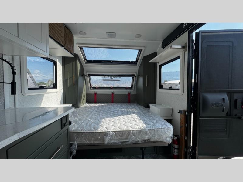 The Pause XC21.4 boasts impressive exterior features that enhance both durability and convenience. The all-composite walls, floor, and walls provide exceptional strength and longevity. A drop-down bar adds versatility to your outdoor space, while the extended slide kitchen offers a convenient area for cooking and food preparation. The Morryde huck rivet frame ensures robust construction, and the puncture-resistant underbelly provides added protection for your journeys. With a dual independent air suspension by Morryde, featuring 12 inches of travel and 25 inches of ground clearance, this trailer is equipped to handle even the most challenging terrains. Harness the power of the sun with up to 1200 watts of solar capability and an impressive 1080 amp hours of lithium Battle Born battery capacity that works hand in hand with a state-of-the-art Victron electronic management system.
