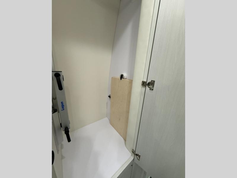 You will experience a comfortable ride in this Plateau Class B diesel motorhome with memory foam sofa cushions. The wet bath comes fully equipped with a medicine cabinet including a mirror, a Corian countertop, a towel rack, and a handheld showerhead. The exterior shower also has a handheld showerhead to make rinsing off the evidence of a fun-filled day even easier before heading inside. All of the seating throughout is covered in Ultraleather fabric, including the swiveling captain's chairs. With a generous amount of available storage in a full-size wardrobe, you can easily reach any of your hang-up clothes!