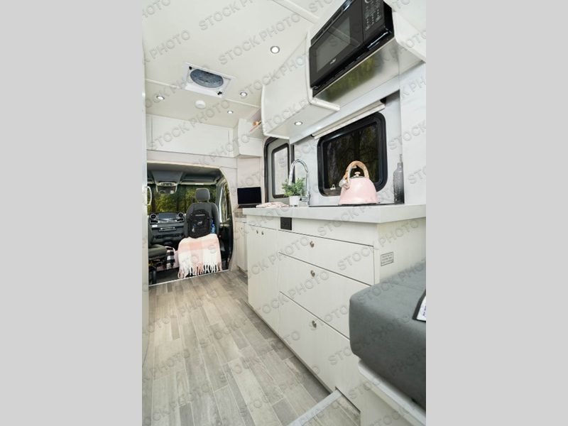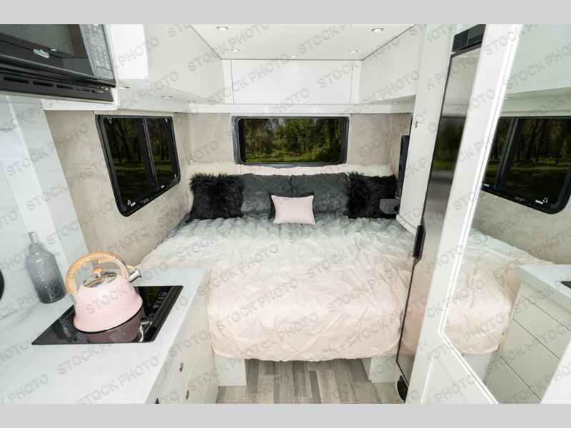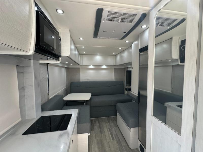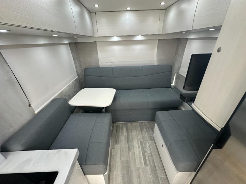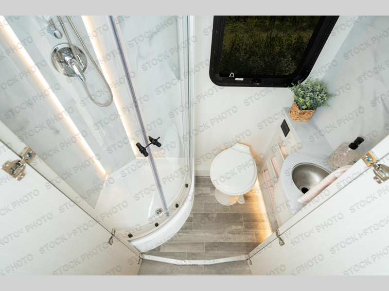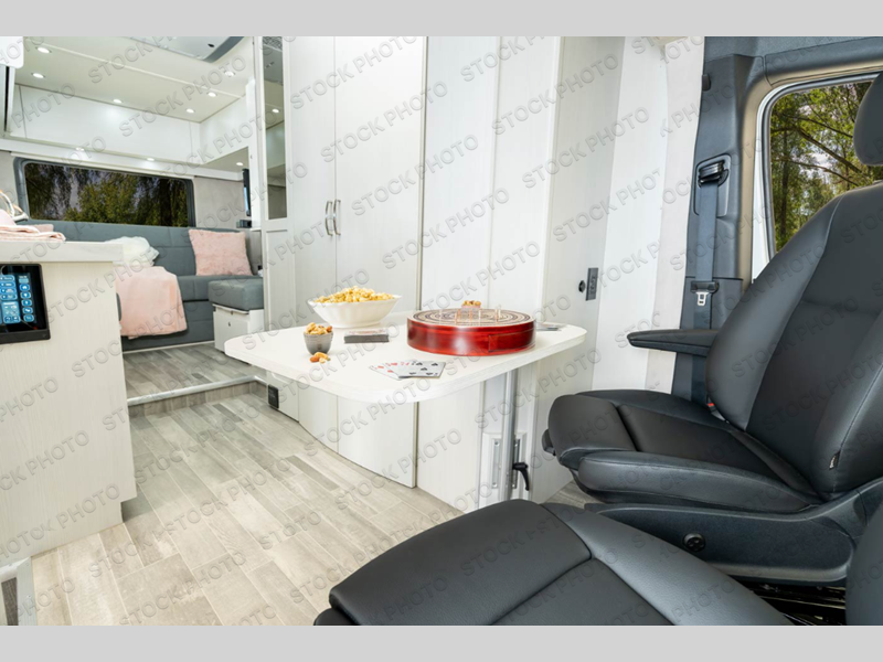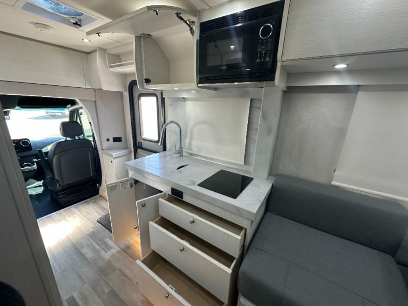 You and your spouse will love touring the country in this comfortable motorhome! After a long day of traveling, freshen up in the full bathroom with the 32" radius shower that is Corian-lined, has a handheld showerhead, a large vanity with storage shelves, and even a towel rack. Prepare your best home cooked meals while on the road with the one burner induction stove, microwave, and 12V 5.3 cu. ft. Norcold refrigerator. Your meals can be enjoyed at the rear electric sofa with Lagun table, and it also transforms into a 75" x 74" queen bed for you to get a good night's rest each night. You even have an inflatable air bed that is fitted for the cab so an extra guest or two can tag along. If mother nature rains on your parade then you can watch your favorite movies on the 24" Smart LED TV with swing out mount and a Winegard Rayzar automatic HDTV antenna!