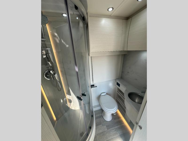 Explore freely in this Pleasure-Way Plateau XLTS Class B+ diesel motorhome! The 500 watt solar panel package helps to keep the 600Ah coach battery bank charged with clean, renewable energy so you can extend your off gridding even further. The widebody construction consists of steel-framed roof, walls, and floor, Sikaflex bonded fiberglass walls, and a one-piece molded fiberglass roof. The full-body paint will turn heads on the highway, and the MBUX multimedia system with 10" touchscreen will keep you entertained the whole time too. You will appreciate how easy it is to attach a propane grill to your unit without having to lug around extra propane bottles. The lightweight, durable design of the exterior shower is perfect for rinsing the sand off your feet or your furry friends paws. Get your hands on one today!