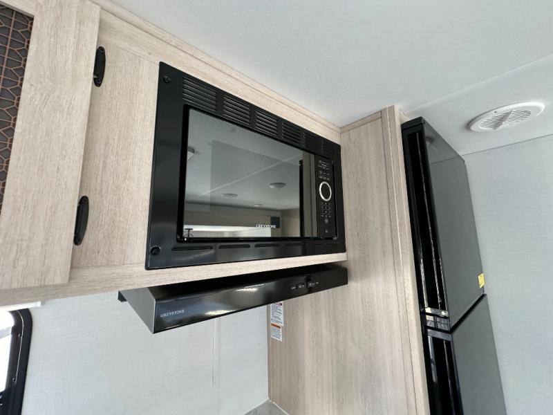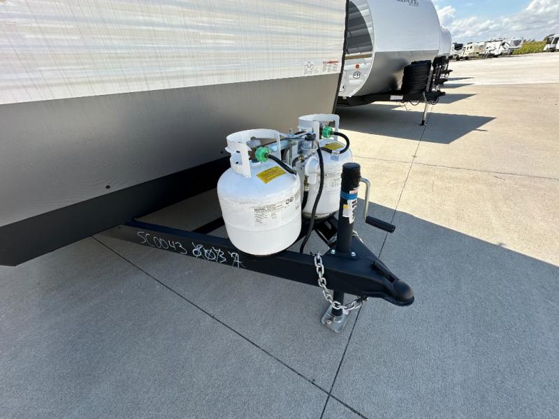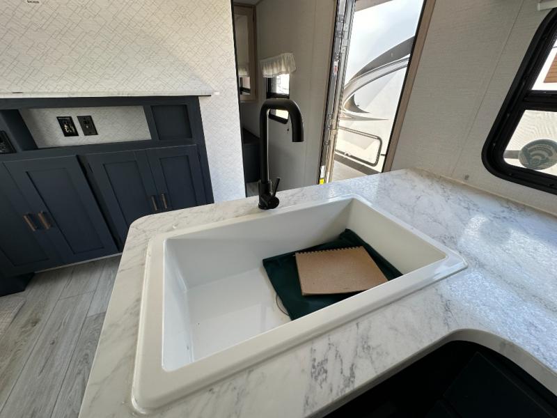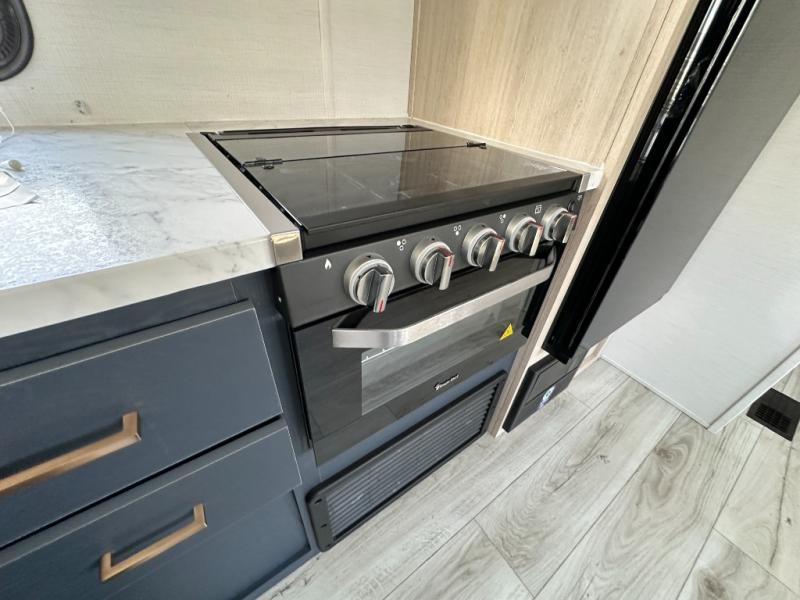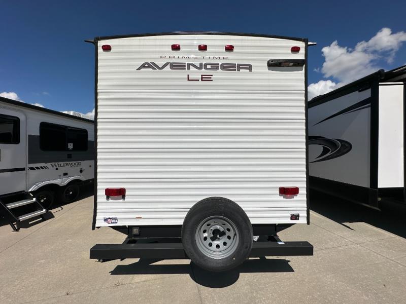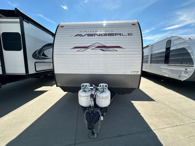With any Avenger LE travel trailer by Prime Time RV you will enjoy at-home comforts while at the campground! Durable construction begins with an enclosed and heated underbelly, a one-piece roof membrane, and diamond plate front rock guard for added protection against debris during transport. There are also locking magnetic latches on the baggage doors, fully vented windows throughout, four stabilizer jacks, plus solar prep if you want the option to go off-grid. The interior will have you feeling right at home with residential extended ball bearing drawer glides, seamless Carefree Congoleum flooring, an XL single basin kitchen sink, and shower pans in all models that will make it easy to get in and out of the bath. Some of the convenient appliances and equipment you will appreciate are the 15,000 BTU A/C, 12V high-capacity water pump, Slim Profile range hood, and the Winegard 360+ antenna with Wi-Fi prep!