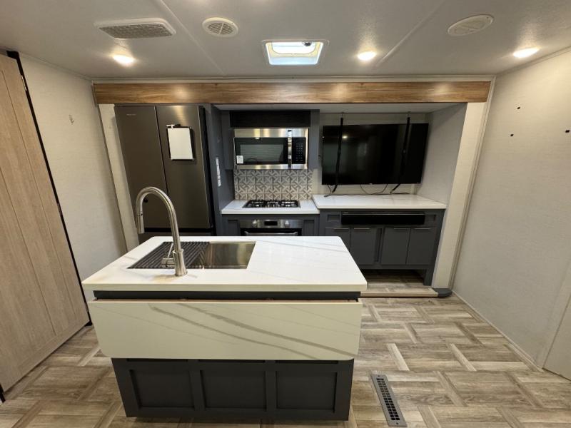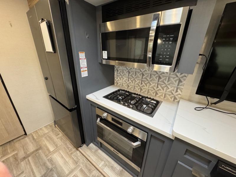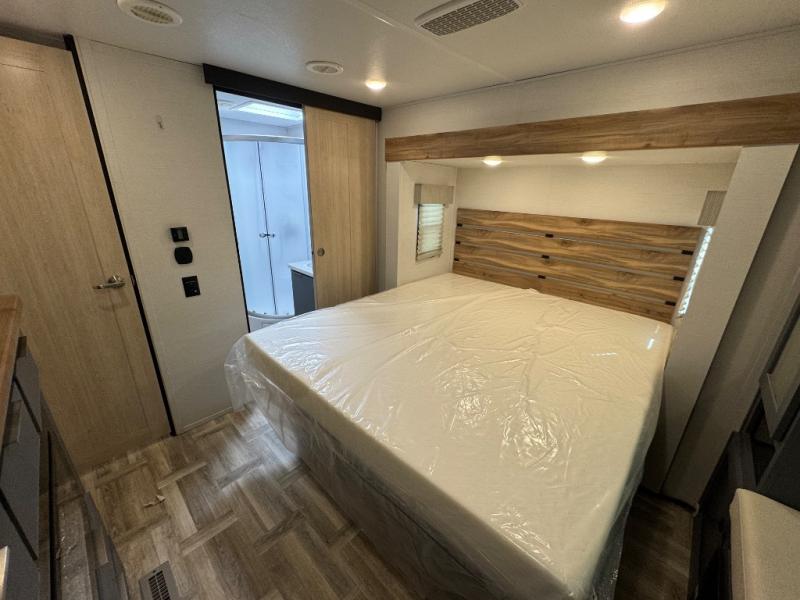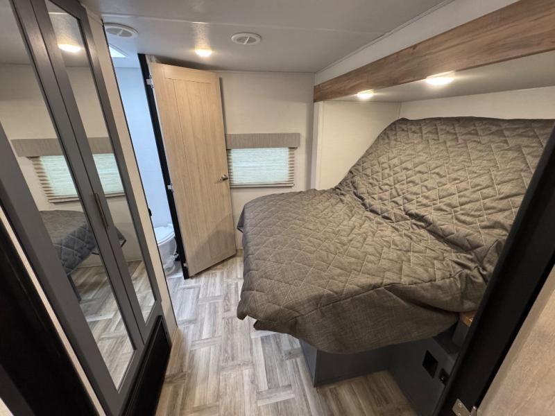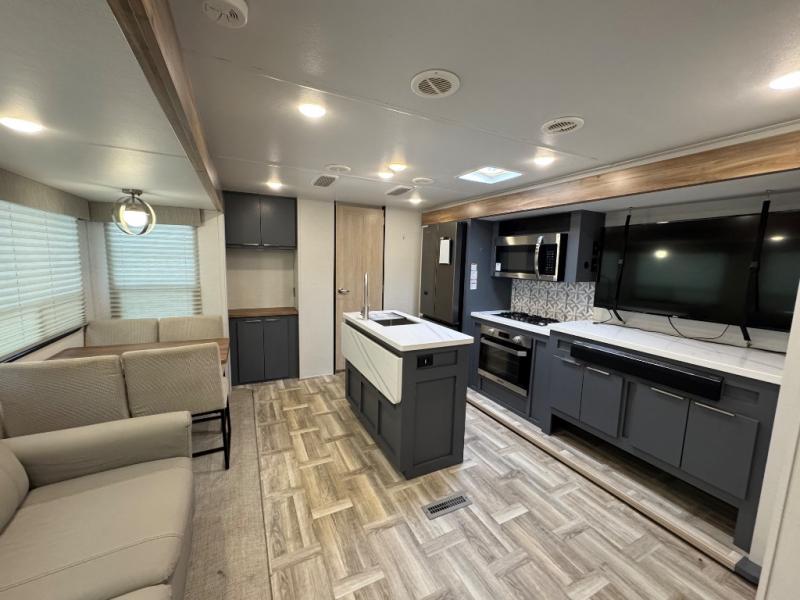Two private bedrooms, a bath and a half, plus quad slides makes this a perfect home away from home for you and your family or friends. The bedrooms are private and on opposite ends with the front master featuring a king bed and fireplace as well as having access to a full bath. The rear bedroom is spacious with a queen bed slide, and a half bath which is convenient at night. The combined living and kitchen area with dual opposing slides allows plenty of space for relaxing and entertaining, and the chef of your group can easily be part of what is happening even when cooking. This unit also features tinted windows!