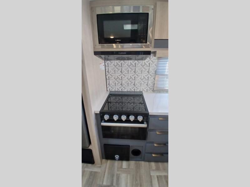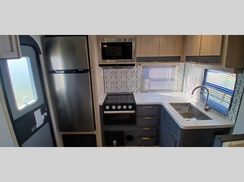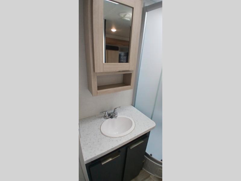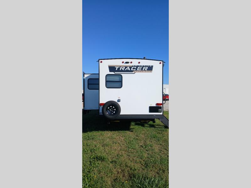 With any Tracer travel trailer by Prime Time RV, you will enjoy a lightweight, easy to tow RV for all your outdoor adventures. Each one is constructed with Eternabond construction that includes laminated aluminum framed walls, floor, and roof for ultra durability. You will be able to extend your camping season thanks to the fully enclosed underbelly, the 30K BTU furnace, and the 15,000 BTU A/C. The Tracer travel trailers are packed with exterior conveniences to make each trip hassle-free, like the power tongue jack and electric stabilizer jacks, the Doggy D-ring pet securement, the universal docking center, and so much more. Head inside to find at-home comforts throughout, including solid wood core cabinetry, LED lighting with motion sensor lights in key locations, and a brushed nickel "J" spout kitchen faucet to name a few.