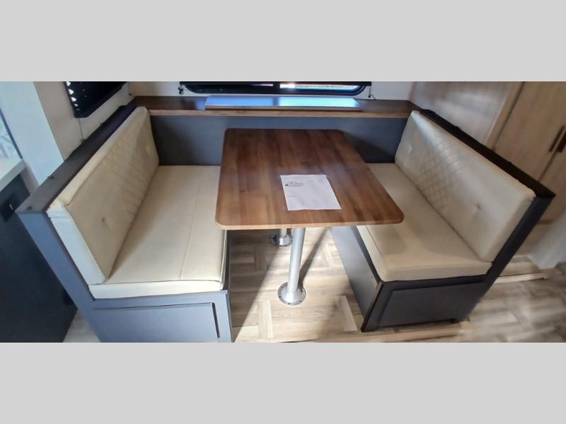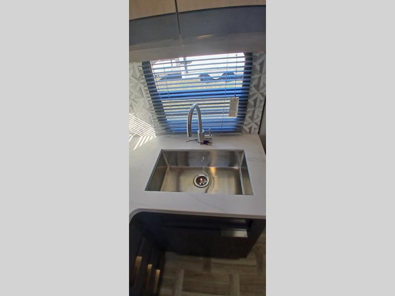 The cook in the family will love this trailer with its rear kitchen which includes all the appliances and an undermount stainless steel sink, plus windows for views. The slide out in the main living area provides more elbow room and includes a booth dinette with under bench storage, a pantry for dry goods and a wardrobe for your guests. The full bathroom offers a radius shower and vanity, and the front bedroom gives you privacy, a queen bed with wardrobes, and the second entry/exit door for convenience.