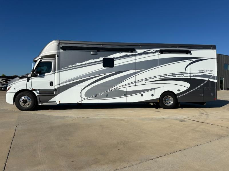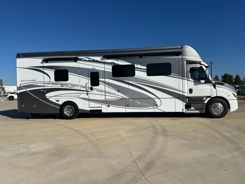 Extreme luxury, extreme purpose, and extreme durability is what you will find in each one of these Renegade Explorer Super C diesel motorhomes! They are more advanced than ever with a Freightliner Cascadia 116 chassis with an Allison TRV4000 transmission, a Detroit DD13 engine, and 525HP. The spacious interior is beautifully designed with tile floors, full maple, hardwood residential style cabinets, tile backsplashes, and ultra soft touch vinyl furniture upholstery. A multiplex system comes with Bluetooth app control so you can use it at the touch of a finger, and the Girard 2-Stage lateral arm rooftop awning with LED lights will protect you rain or shine and night or day. The exterior also has seven full body paint treatment colors to choose from and a 4 point automatic hydraulic leveling system. Start driving in style today!