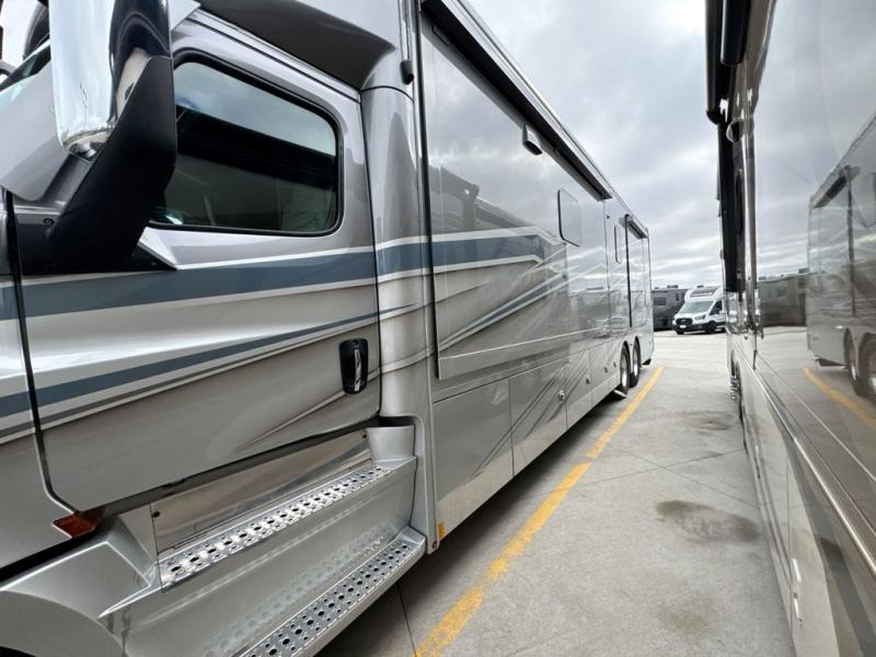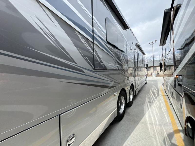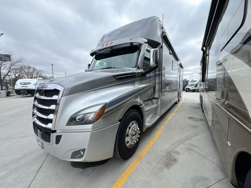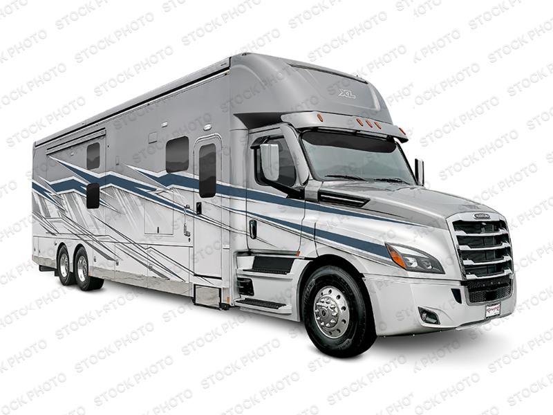 A legend of luxury is what you will find in each one of these Renegade XL Super C diesel motorhomes! Their ultra sleek interiors have been thoughtfully designed with simplified luxury and many unparalleled features like Cambria Quartz countertops throughout and Mastrotto Italian hide leather furniture. The 4-point automatic hydraulic leveling system makes life easier, the multiplex system with color touch panel and Bluetooth app control lets you adjust things with the touch of a finger, and the Aqua-Hot 600D hydronic water and zone heating system provides hot water where ever you go. With seven Colorway paint options and three interior decor options, you can be sure to have the one that fits your style. You will appreciate the electrical systems with dual 3,000W True Sine wave inverters, a 12.5kW Onan quiet diesel generator, two 330 ah AGM house batteries, and more features to keep you powered up. Head outdoors to find dual roof-mounted Girard awnings, and steel storage compartments to keep your gear secure. And we haven't even touched on the cab conveniences, like the digital dash cluster and 10" infotainment system, the 360 degree camera system and upgraded cab sound system, plus the Freightliner Safety Assurance Package with collision mitigation, lane departure warning, and more!