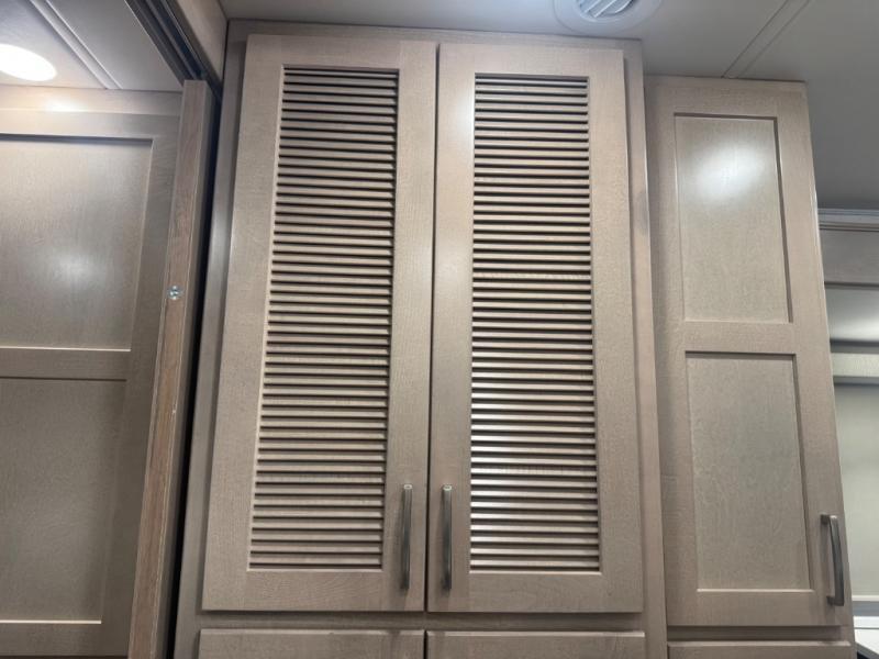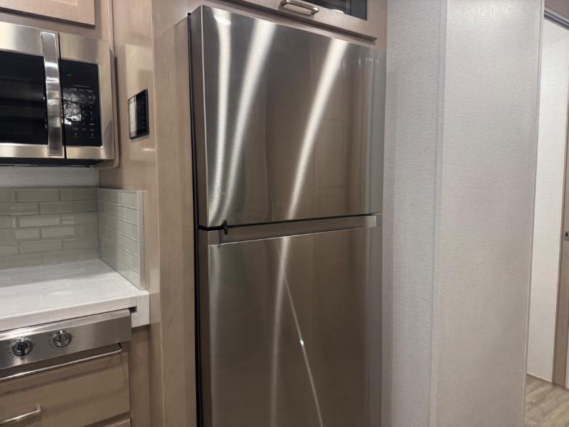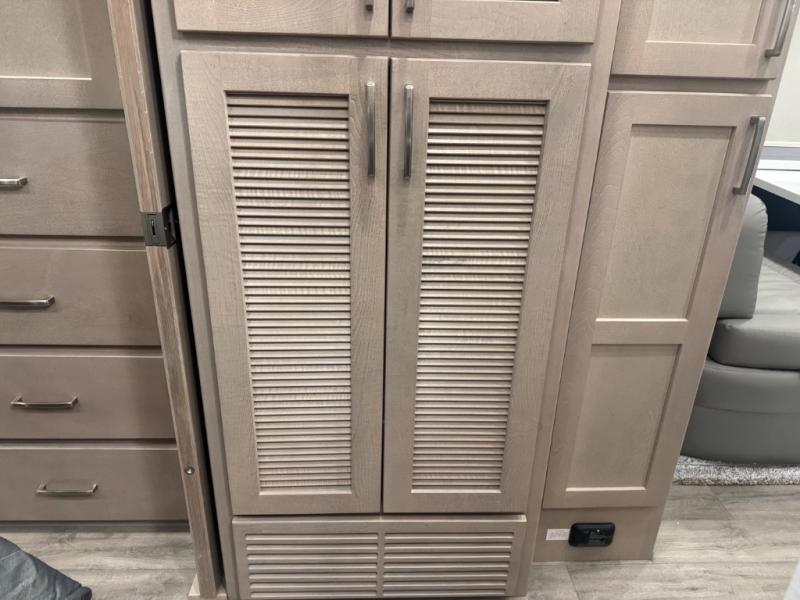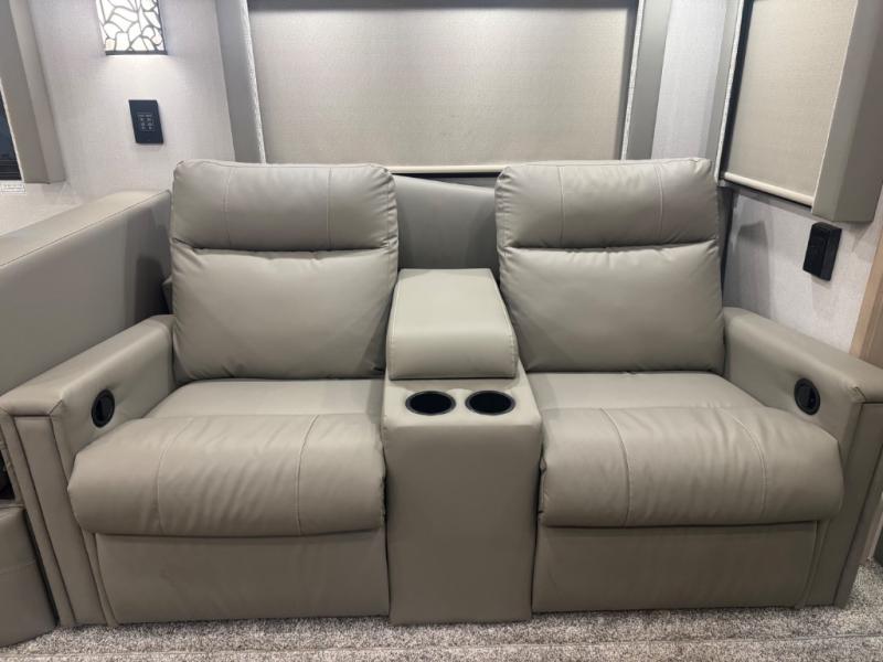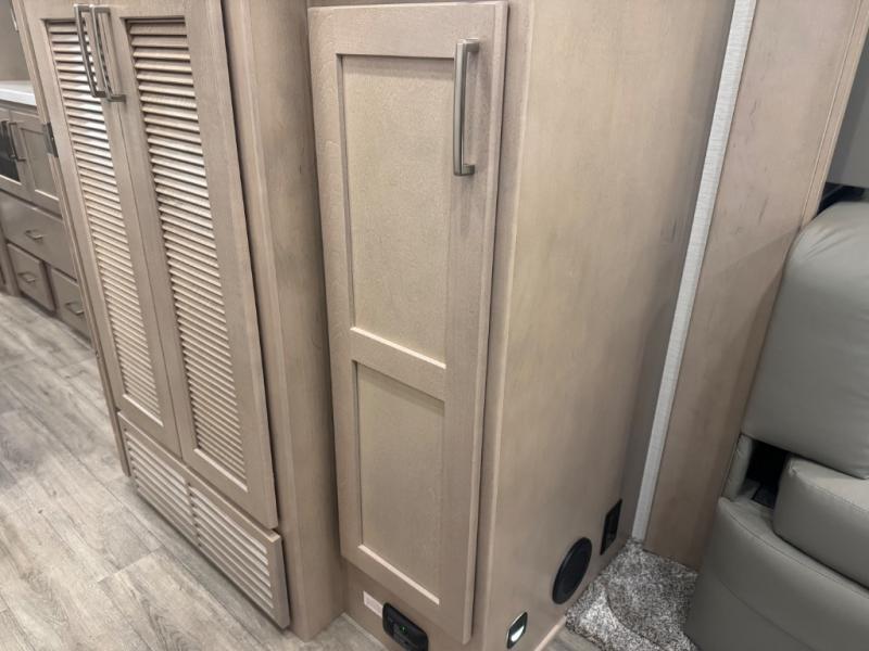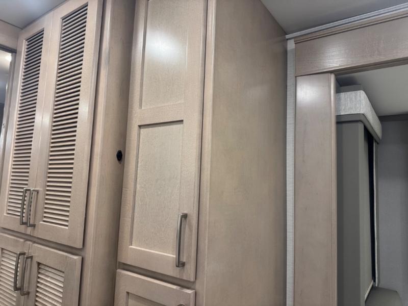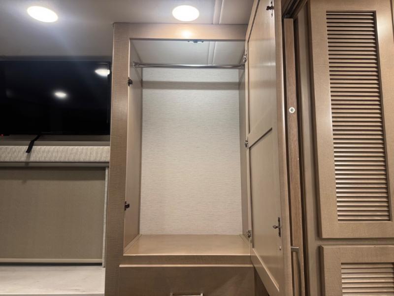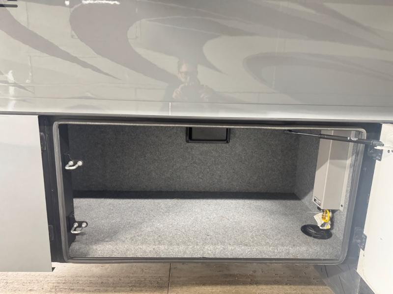 Start traveling the right way with this motorhome! There is plenty of entertainment throughout the inside and outside between the exterior entertainment center with a 32" Smart LED TV, a 39" Smart LED TV in the living area, and a 32" Smart LED TV in the private bedroom. Across from the half bathroom is an area pre-wired and plumbed for an optional washer and dryer so you can have clean clothes for your entire trip if you choose. The master suite has a 72" x 74" king bed to lay your head on at night and access to the full rear bathroom which has a radius shower with a skylight above for natural lighting and overhead cabinets to store your toiletries. The sofa sleeper and booth dinette offer comfortable places to enjoy meals, socialize, and even transform into sleeping spaces! Each one of these Renegade Valencia Super C diesel motorhomes offer ultimate comfort and durable construction! They have a Freightliner S2RV chassis for a refined ride with responsive handling, as well as a powerful Cummins ISB 360 HP engine with a 3,000MH Alison transmission and a single 100 gallon fuel tank to get you farther. A few of the beautifully designed interior features are the solid hardwood cabinets, the polished solid surface countertops, and the stainless-steel appliances. Travel in comfort and style with the modern furniture and abundant storage areas like the exterior steel storage compartments with carpeted lining. You will also appreciate the four point automatic hydraulic leveling system and the multiplex system with Bluetooth app control. With six Colorway paint options and three interior décor options, you can be sure to find the right one for you!