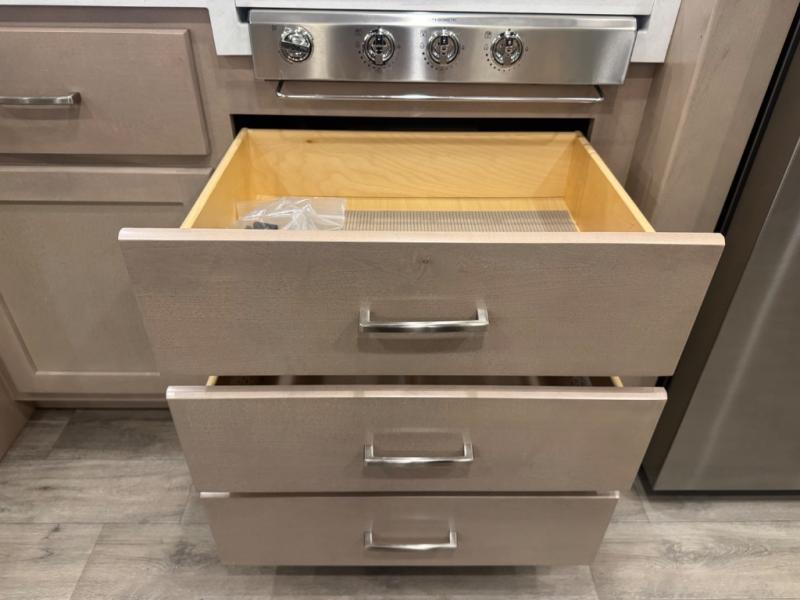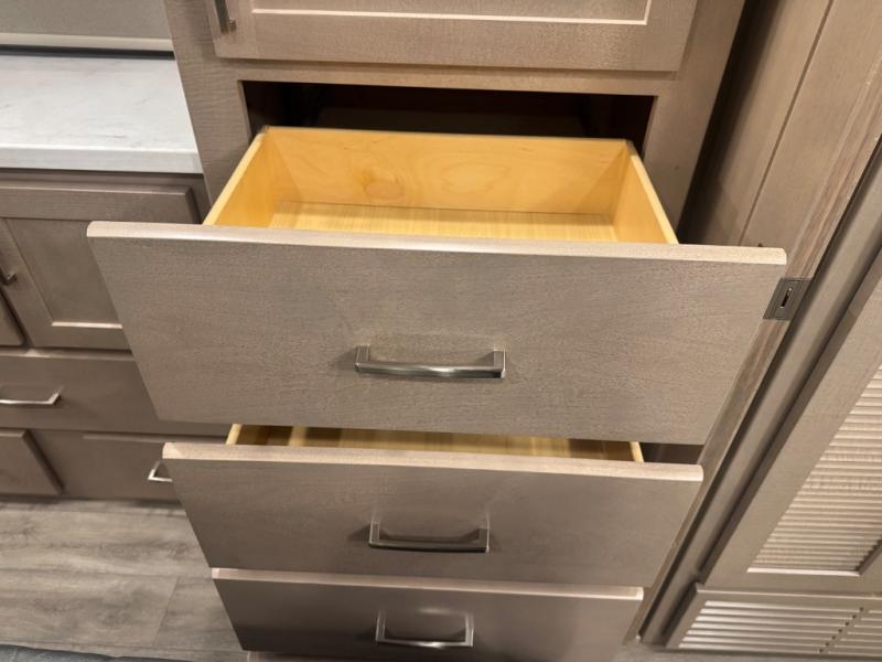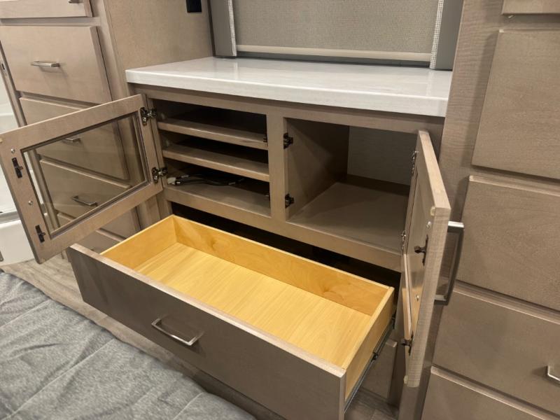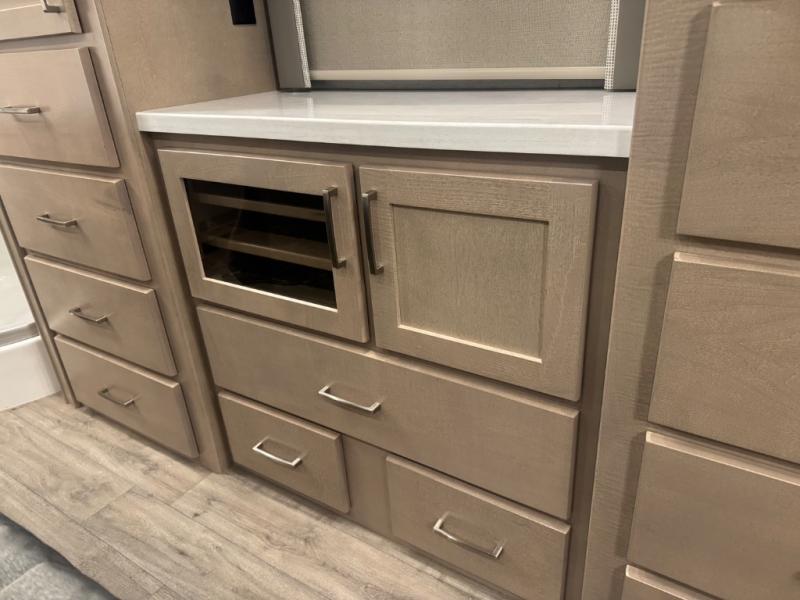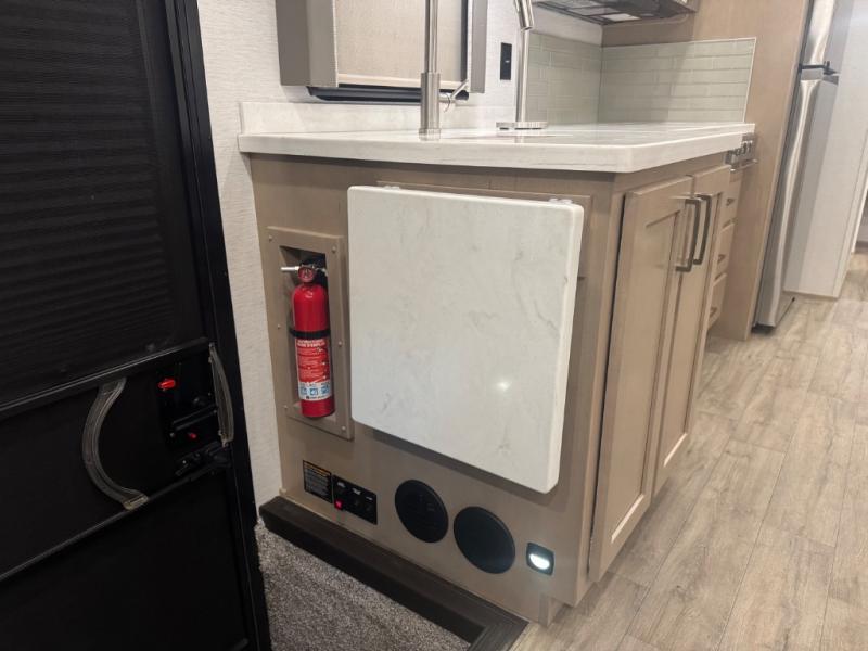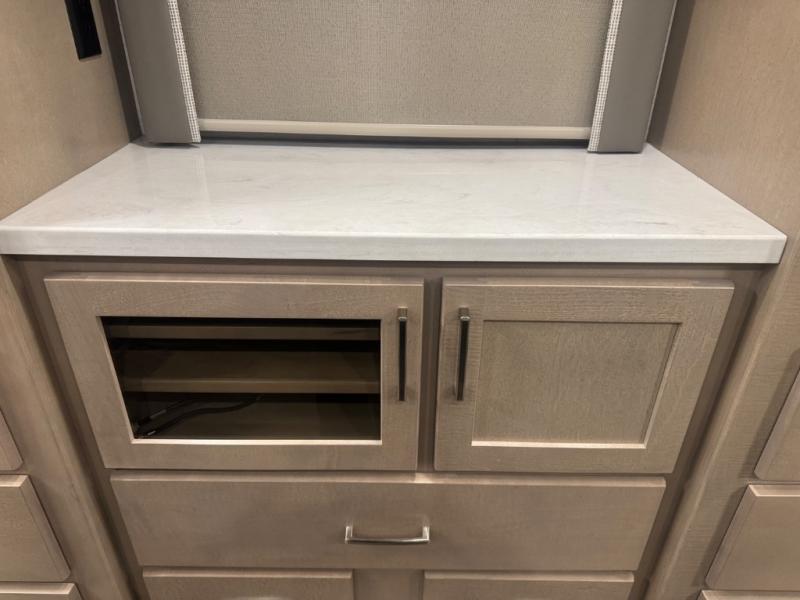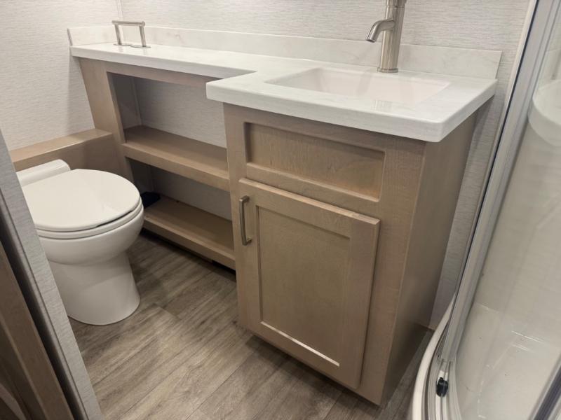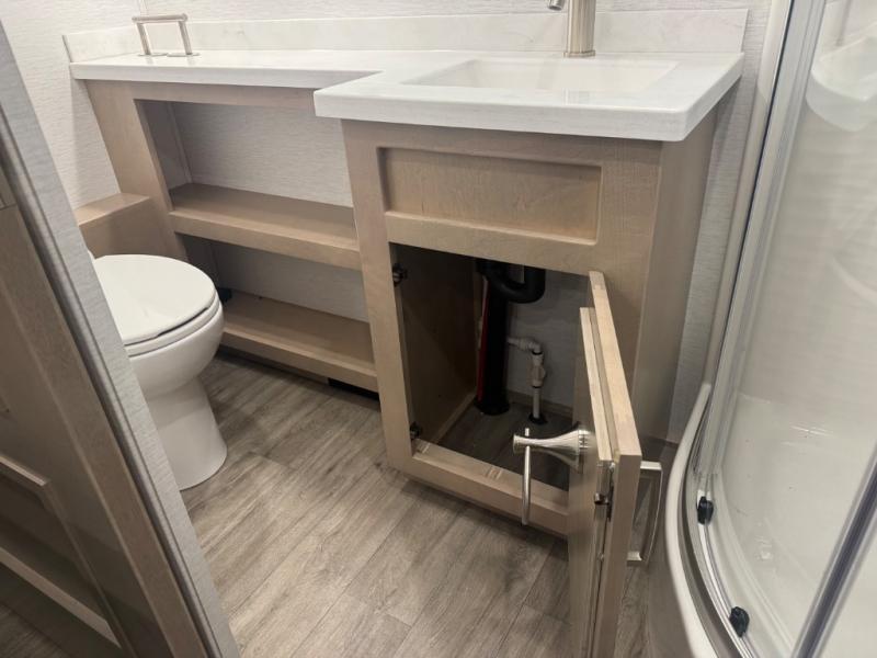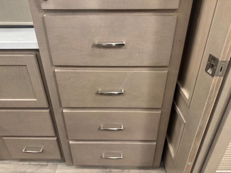 Start traveling the right way with this motorhome! There is plenty of entertainment throughout the inside and outside between the exterior entertainment center with a 32" Smart LED TV, a 39" Smart LED TV in the living area, and a 32" Smart LED TV in the private bedroom. Across from the half bathroom is an area pre-wired and plumbed for an optional washer and dryer so you can have clean clothes for your entire trip if you choose. The master suite has a 72" x 74" king bed to lay your head on at night and access to the full rear bathroom which has a radius shower with a skylight above for natural lighting and overhead cabinets to store your toiletries. The sofa sleeper and booth dinette offer comfortable places to enjoy meals, socialize, and even transform into sleeping spaces! Each one of these Renegade Valencia Super C diesel motorhomes offer ultimate comfort and durable construction! They have a Freightliner S2RV chassis for a refined ride with responsive handling, as well as a powerful Cummins ISB 360 HP engine with a 3,000MH Alison transmission and a single 100 gallon fuel tank to get you farther. A few of the beautifully designed interior features are the solid hardwood cabinets, the polished solid surface countertops, and the stainless-steel appliances. Travel in comfort and style with the modern furniture and abundant storage areas like the exterior steel storage compartments with carpeted lining. You will also appreciate the four point automatic hydraulic leveling system and the multiplex system with Bluetooth app control. With six Colorway paint options and three interior décor options, you can be sure to find the right one for you!