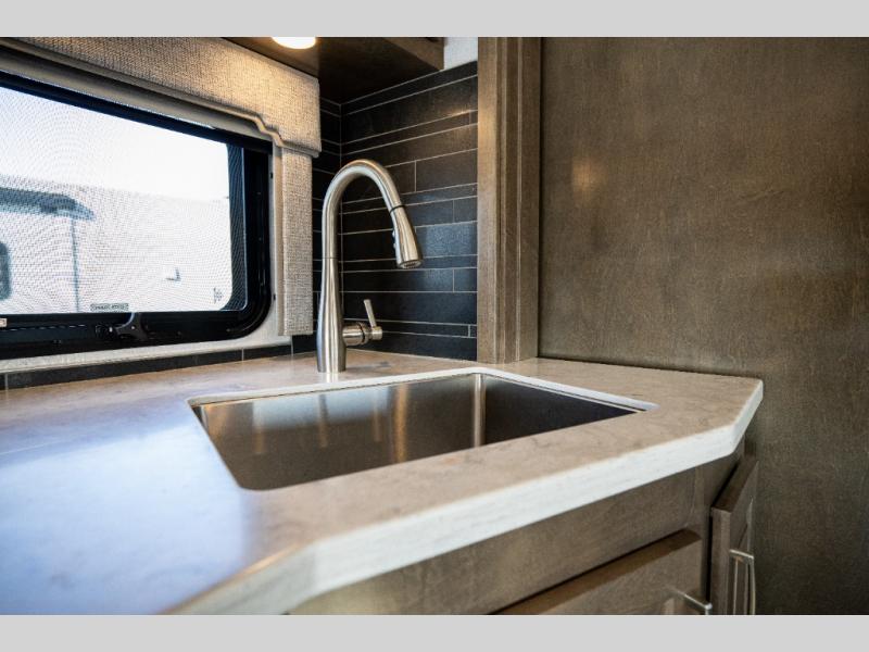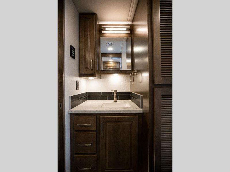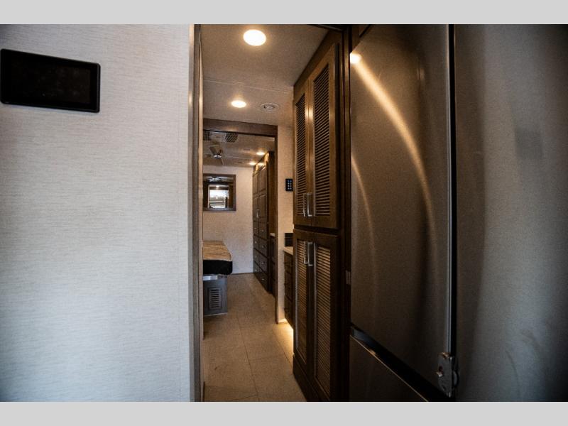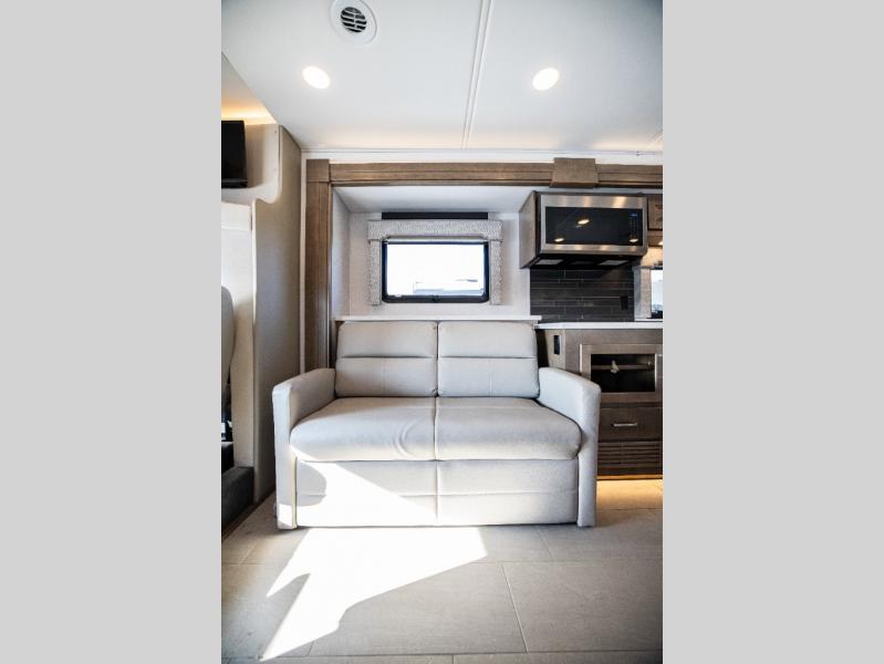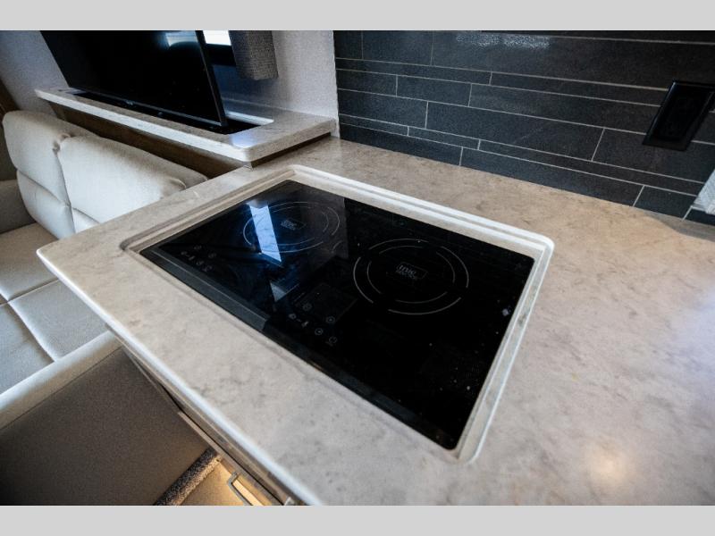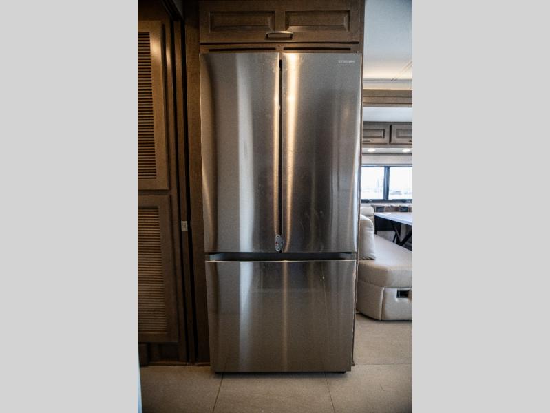 This family-friendly coach offers sleeping space for six when you convert the hide-a-bed sofa, the second sofa and the booth dinette. The triple slides open up the living area and bedroom giving everyone lots of floor space to move about during the day and at night. The rear bedroom offers a memory foam mattress, a wardrobe and a 32" Smart LED TV. You will surely appreciate the split-style bathroom when trying to quickly get ready to shop in town or prepare for bed. You can make meals for everyone using the recessed two burner electric induction cooktop and convection microwave, and will also appreciate 18 cu. ft. French door residential refrigerator with stainless steel doors.