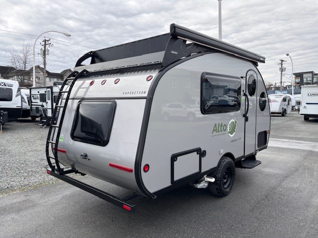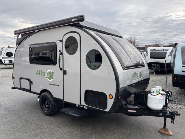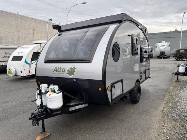 Each Alto travel trailer by Safari Condo is constructed with sustainable materials with a focus on lightweight towing. The aluminum floor and frame will add years of use to your RV, and the interior furnishings are made from composite materials. Each model includes electric brakes and a Flexiride suspension for smooth towing, a rear window screen and side door screen, plus a slick Silver Metallic exterior color or optional Azure Blue Metallic color. You will also appreciate the kitchen amenities inside to cook meals each day, the automatic 12V variable speed roof vent with a remote to keep you cool, plus available options to further customize your RV to fit your needs. Whether you choose a compact R-Series model, a spacious F-Series model, or the aerodynamic A-Series model, you'll be happy you went with an Alto travel trailer!