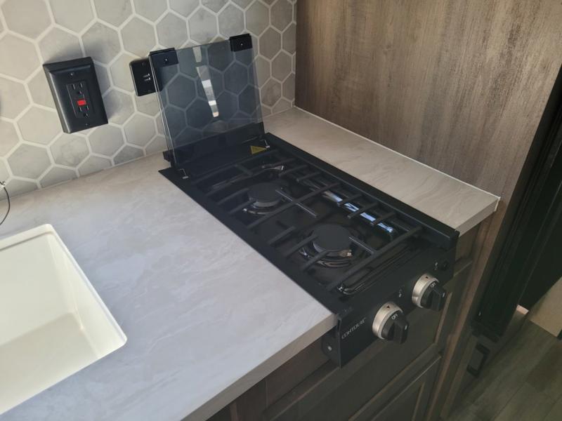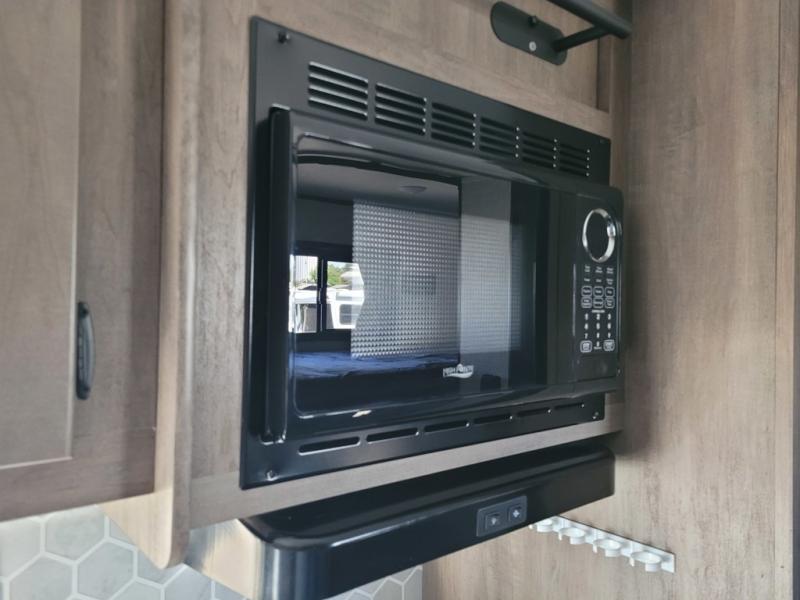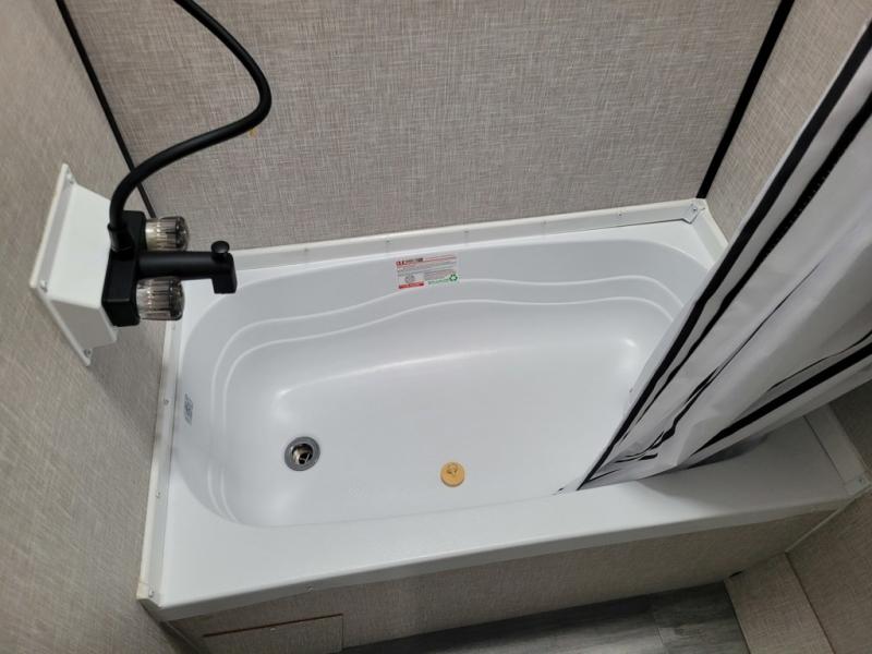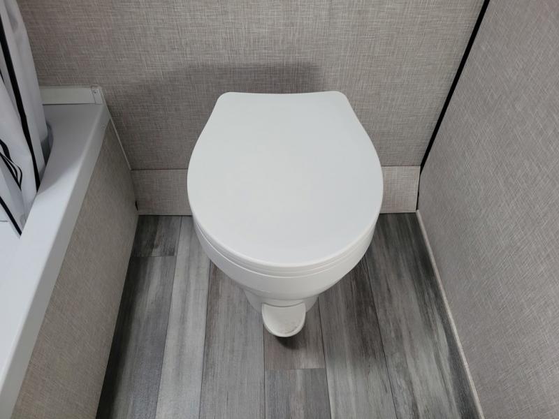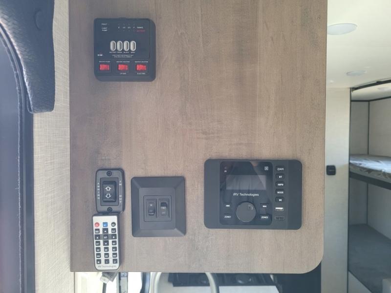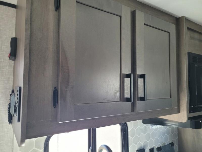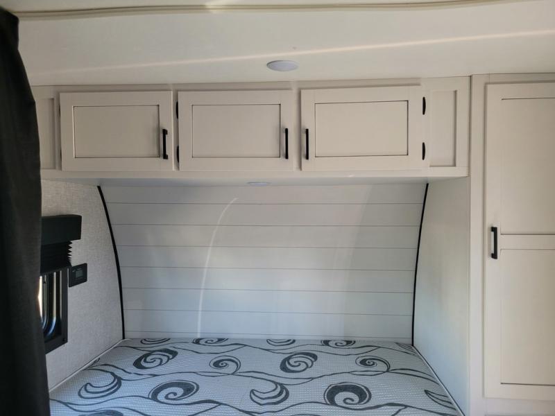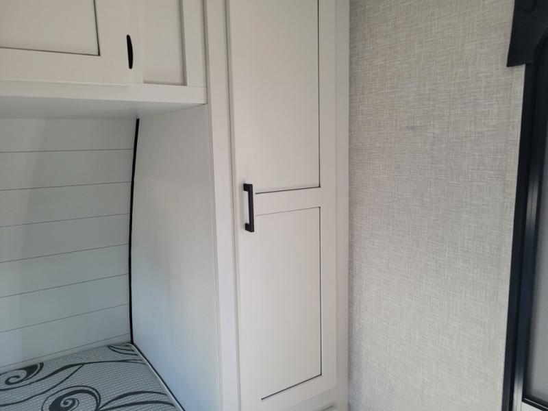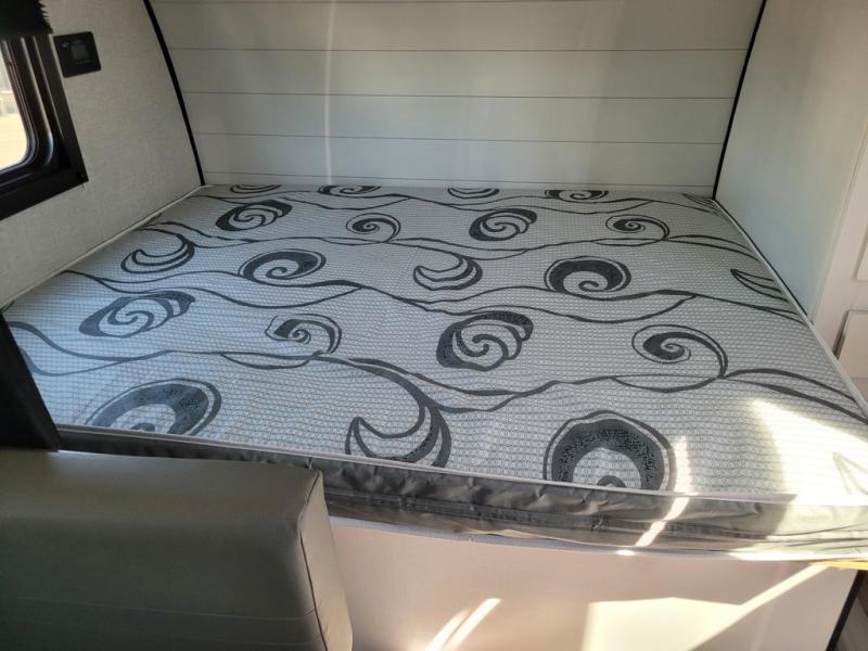 If you're in the market for a lightweight single axle travel trailer with bunk beds, you're in luck with this unit! You will have the front bed all to yourselves, and there is a wardrobe here to store your clothes. The chef can whip up lunch on the two burner cooktop, and you can dine at the booth dinette. If the weather is nice, you may just want to sit outdoors under the 13' power awning with LED lights. The rear corner bath includes a foot flush toilet and a tub/shower, and you'll find plenty of storage space throughout this model, including outside storage for charcoal, tackle boxes, and tools!
