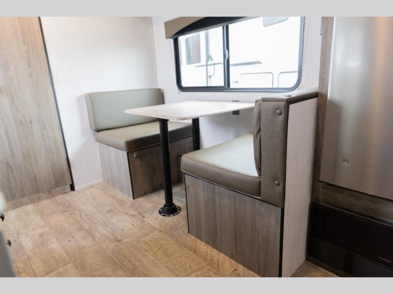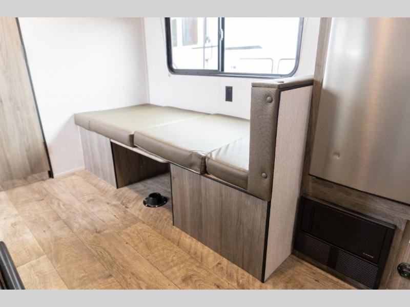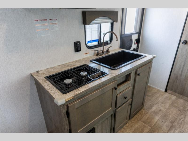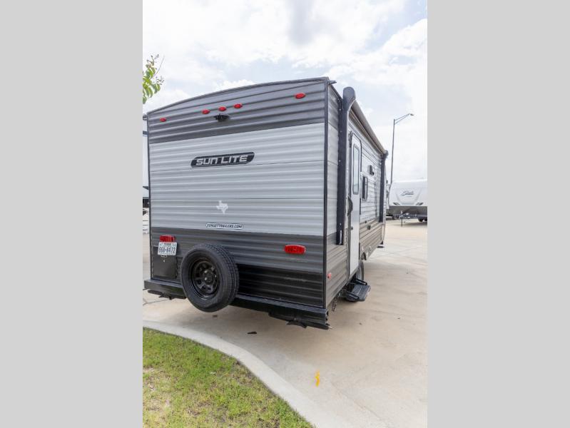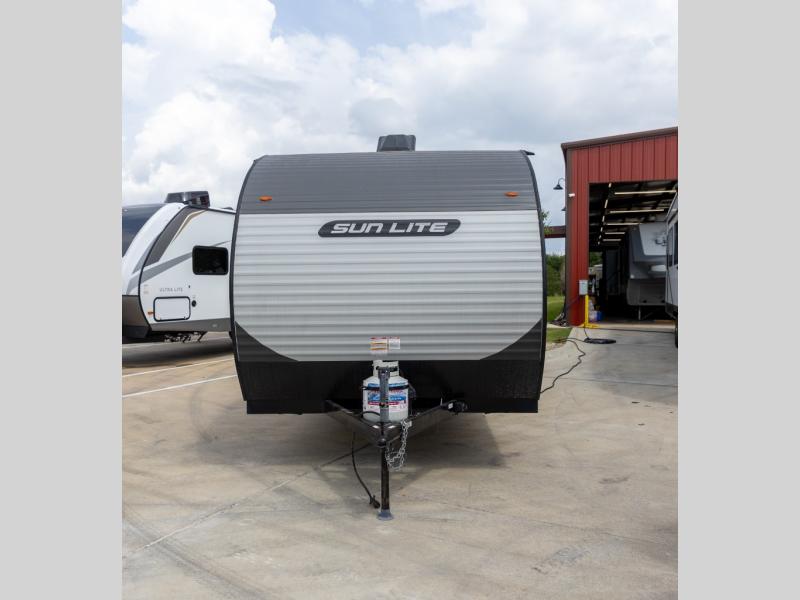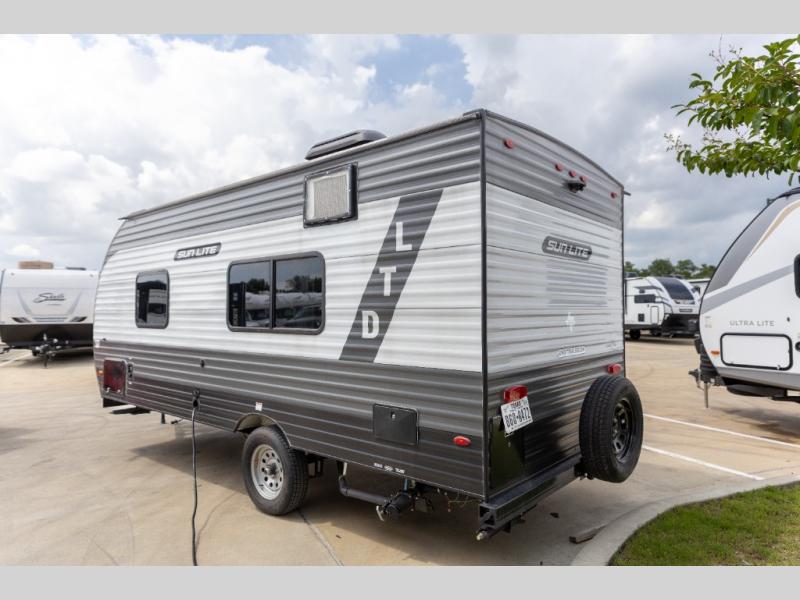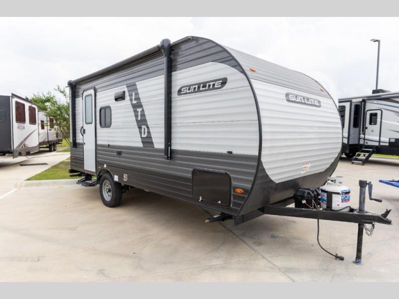 The perfect couple's trailer is waiting for you with this Sun Lite LTD! The front RV queen bed will provide a great night's rest after a day of hiking outdoors, and the full rear bath will let you clean up each day. There is a booth dinette where you can dine at each day, and even let another guest sleep over if needed. You'll also find a two burner stove to make meals, a double sink to clean up, and a 4.3 cu. ft. 12V refrigerator for leftovers! What's not to love about this travel trailer?!