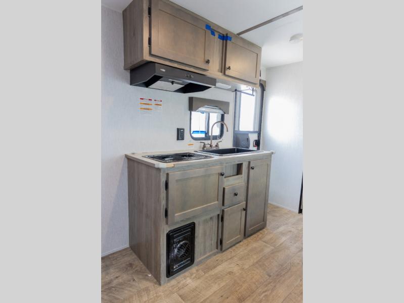 Each Sun Lite LTD travel trailer by Sunset Park RV is made with flexibility in mind. These lightweight models weigh under 3,000 lbs. for easy towing, and they offer best-in class interior storage for all your belongings. There are wood framed sidewalls, .024" aluminum siding, plus 3/8" fully walkable roof decking for added durability. The spring-leaf Dexter axles and radial tires will make towing easier than ever, and the front and rear stabilizer jacks will provide a secure foundation when you're set up at the campground. A 100W solar kit with a controller is also included, along with a 20 lb. LP tank, and a power awning for protection against the elements. Inside, you'll find a power vent in the bathroom, LED lights, USB ports, and cable/satellite hookups. And the LTD Appliance Package also comes standard with a 12V refrigerator, a two burner stove, a DSI gas water heater, plus a 5k BTU A/C and a 16k BTU furnace!