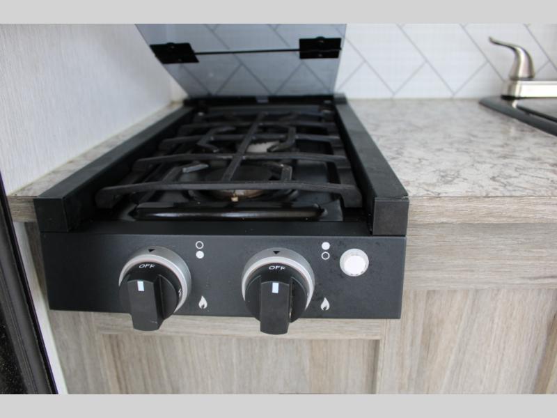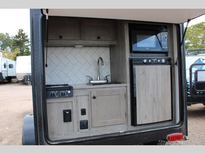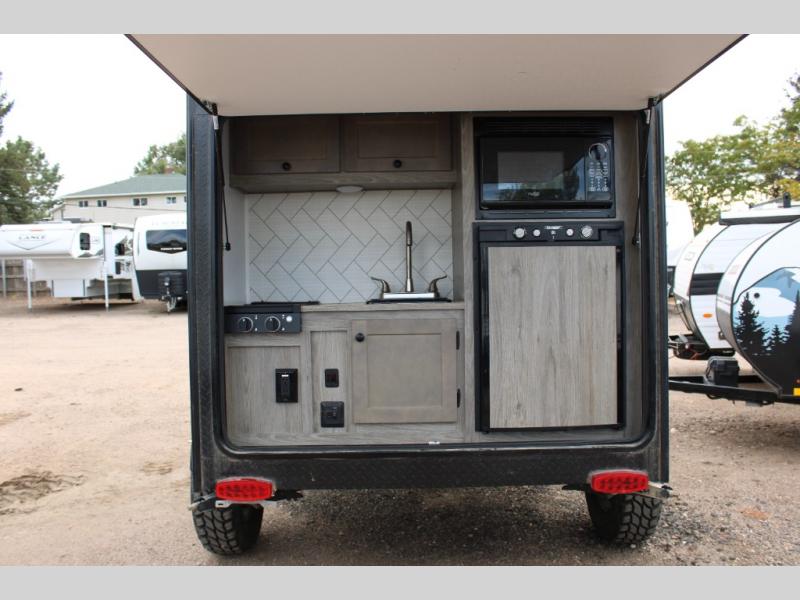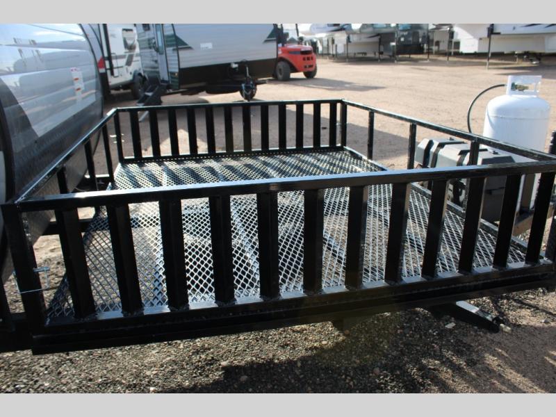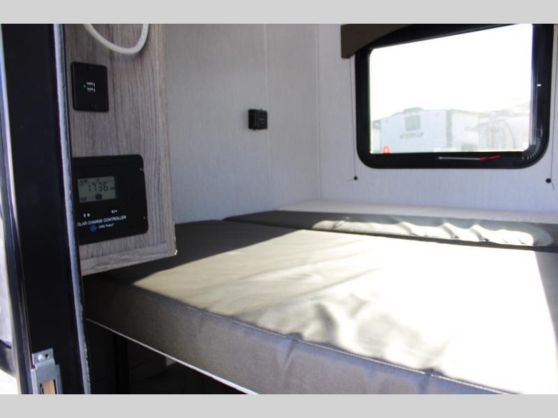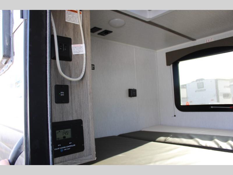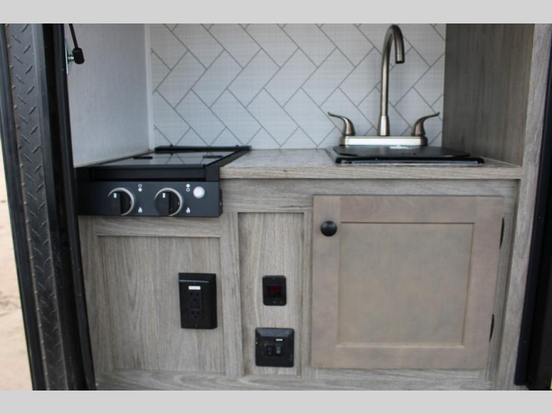 This Sunray travel trailer is set up just like its original counterpart, model 109, but this model comes with an extra advantage: a front ATV rack! You can use this rack to transport your ATVs without having to tow an additional trailer. There is an outdoor kitchen that comes with a two-burner stove top, a refrigerator, and a microwave so that you can cook dinner without having to start a fire. You will have an outside shower that you can use for various purposes, like rinsing off your equipment, filling a bucket with water, or hosing down your muddy puppy, and there are USB ports and a Winegard HDTV antenna to keep you modern.