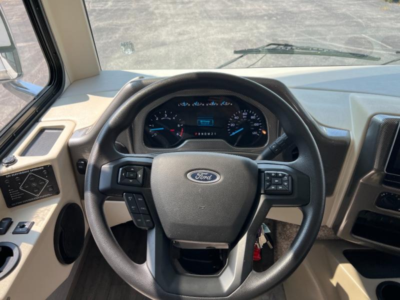 The A.C.E Class A gas motorhome is constructed with a welded tubular steel floor, vacu-bond laminated roof, walls and floor with block foam insulation, and a premium one-piece exterior roof for a coach made to last. You will love the pet-friendly features, like the Bird's Eye window, the Pet-Link multi-purpose tie-down and the Pull-Out Kibble Station with an FDS approved pet bowl liner. Each model includes an Onan RV QG 4,000 gas generator, a Winegard ConnecT Wi-Fi extender +4G, and are pre-wired for solar charging. Some of the other convenient amenities you will find on the A.C.E are framed windows, a basement pass-through storage, and an exterior LP connection. Head inside to find residential vinyl flooring, pressed laminate countertops, glass tile backsplash in the kitchen, and a designer headboard, bedspread and pillow shams in the bedroom for all-around comfort!