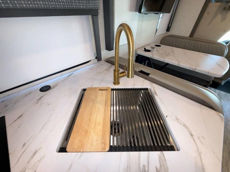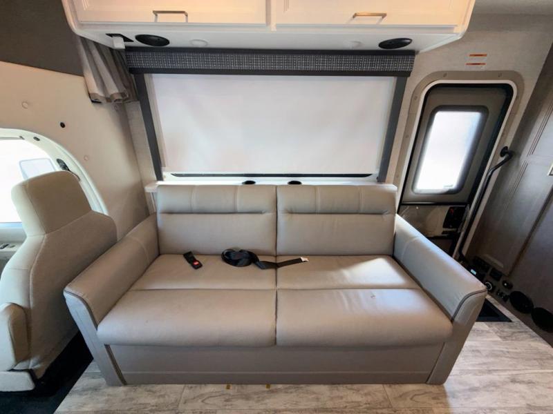 Experience a smooth ride to each destination with the Thor Motor Coach Chateau Class C gas motorhomes! There is a Ford E-Series chassis or optional Chevrolet chassis on select models, and each model includes an 8,000 lb. trailer hitch to bring the family car along. They are constructed with a welded tubular aluminum roof, sidewall cage construction, vacu-bond laminated roof, walls, and floor with block foam insulation to keep the heat and air conditioning inside. The slick fiberglass exterior with graphics package and black framed windows are sure to turn heads down the highway too. Inside, you'll be met with residential vinyl flooring, window privacy shades, a power bath vent, and pressed laminate kitchen countertops. There is even a tankless water heater for endless hot showers, a 4.0 kw gas generator to keep you going, and solar prep for off-grid capabilities!