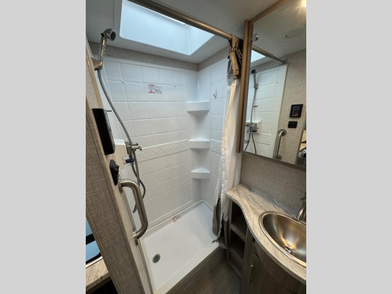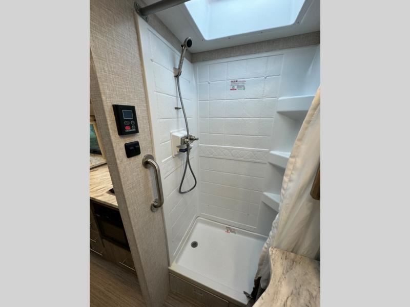 The Thor Motor Coach Compass AWD Class B+ gas motorhome is small but mighty! It includes all-wheel drive, and it is built upon a Ford Transit chassis, 3.5L V6 Eco Boost turbo gas engine, and Ford ten-speed automatic overdrive transmission. The Ford safety features provide excellent care while driving, and you can stay connected to your Compass AWD with the FordPass Connect. The power patio awning with LED lights can be moved out into position with just one touch on your cell phone thanks to the Rapid Camp+ multiplex control system. You will have a 100W solar panel with controller, a 15,000 BTU air conditioner, a Winegard ConnecT 2.0 Wi-Fi/4G/TV antenna, and a tankless water heater as some of the top electrical and plumbing features.